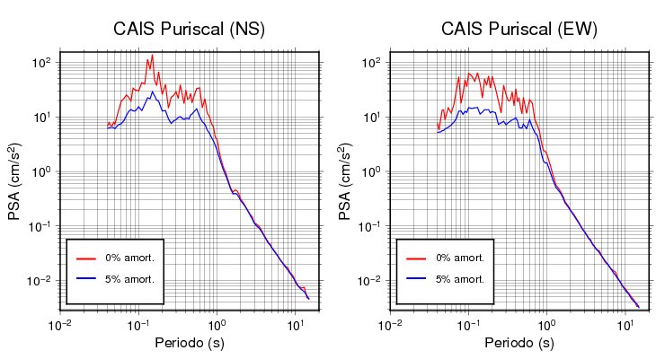 Esta tabla contiene los valores de PSA en cm/s2 calculados del espectro de respuesta con 5% de amortiguamiento a 1 segundo (se muestran los valores para aquellas estaciones que tuvieron un valor de aceleración superior a 5 cm/s2).