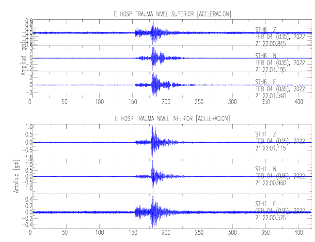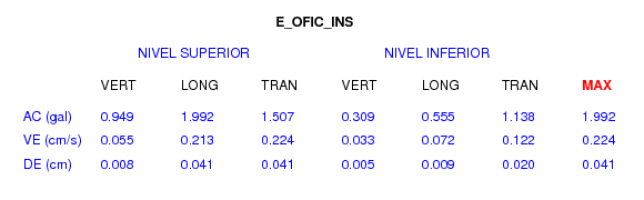 En esta sección se muestran los registros de aceleración (ac), velocidad (ve) y desplazamiento (de) de los niveles superior e inferior de varios edificios que se encuentran conectados al LIS ( http://www.estructuras.lis.ucr.ac.cr )