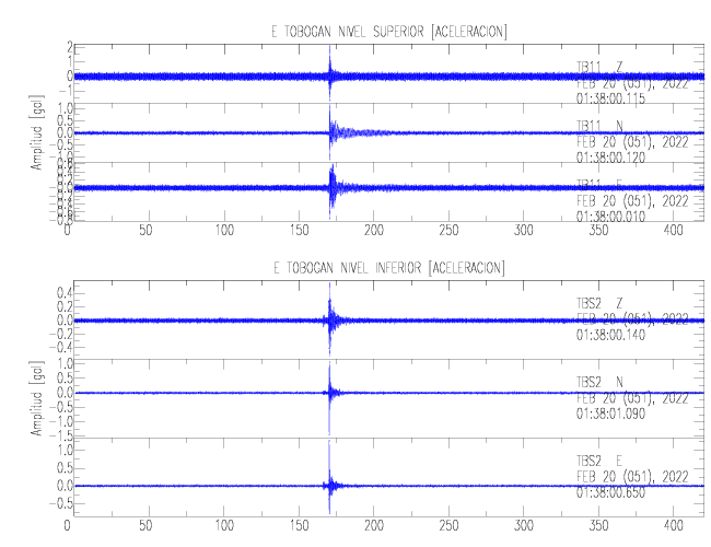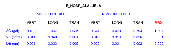 En esta sección se muestran los registros de aceleración (ac), velocidad (ve) y desplazamiento (de) de los niveles superior e inferior de varios edificios que se encuentran conectados al LIS ( http://www.estructuras.lis.ucr.ac.cr )
