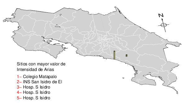 Mapa mostrando la IA en cada sitio de registro. Se grafica el valor máximo de la tabla anterior.
