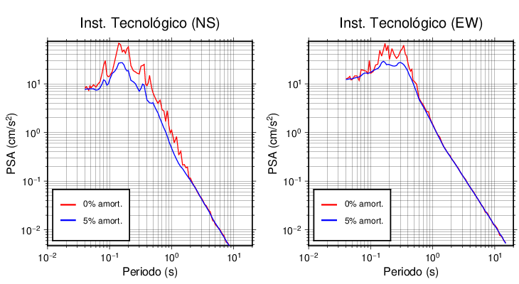 Esta tabla contiene los valores de PSA en cm/s2 calculados del espectro de respuesta con 5% de amortiguamiento a 1 segundo (se muestran los valores para aquellas estaciones que tuvieron un valor de aceleración superior a 5 cm/s2).