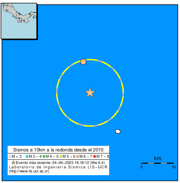 A 10km a la redonda del epicentro, el LISUCR ha localizado también los siguientes sismos ocurridos desde el 2010. Todos ellos con profundidades inferiores a los 40km.