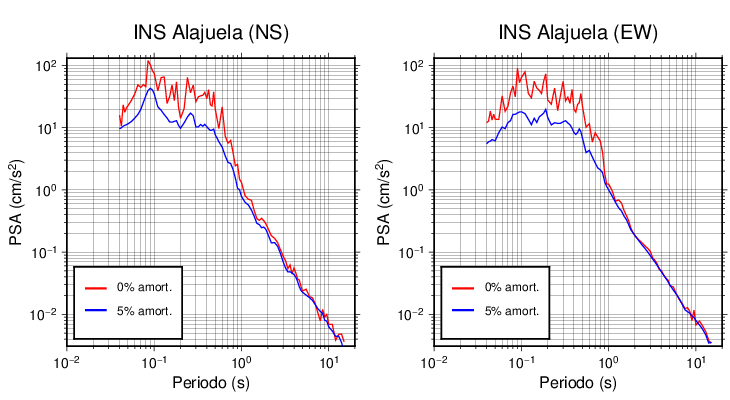 Esta tabla contiene los valores de PSA en cm/s2 calculados del espectro de respuesta con 5% de amortiguamiento a 1 segundo (se muestran los valores para aquellas estaciones que tuvieron un valor de aceleración superior a 5 cm/s2).
