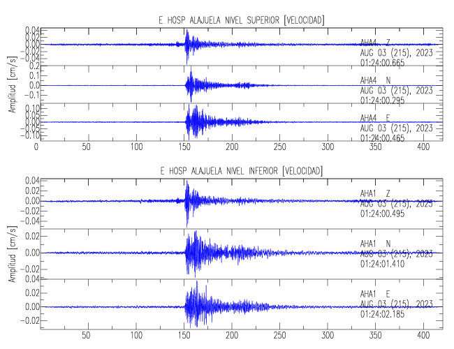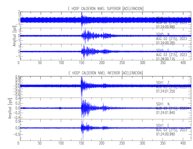 En esta sección se muestran los registros de aceleración (ac), velocidad (ve) y desplazamiento (de) de los niveles superior e inferior de varios edificios que se encuentran conectados al LIS ( http://www.estructuras.lis.ucr.ac.cr )