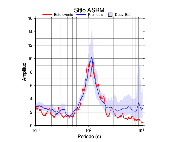 Los resultados que se presentan aquí fueron obtenidos luego de dividir las componentes horizontales entre la componente vertical (conocido como técnica H/V). Se grafica tanto el efecto de sitio del sismo registrado como el valor promedio en cada estación y su correspondiente desviación estándar.