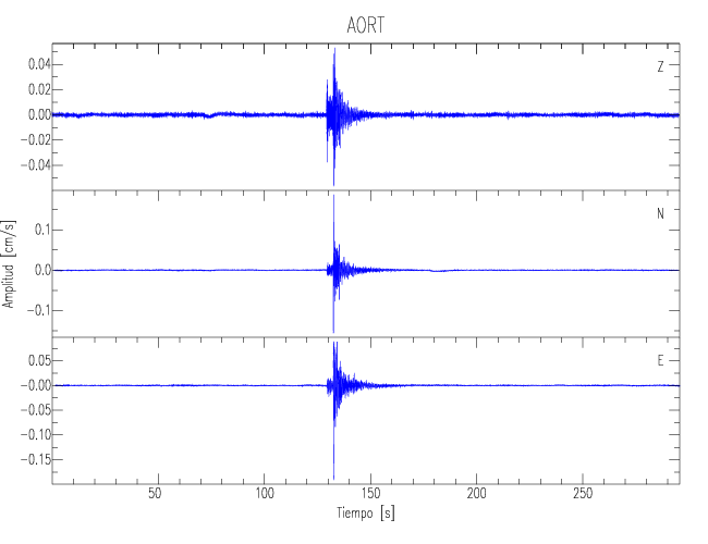 Los registros de velocidad se obtienen de la integración de los datos de aceleración. Esta tabla contiene los valores de velocidad máxima (PGV por sus siglas en inglés) para cada componente en cm/s. Las estaciones se listan en orden alfabético y corresponden a los sitios en que el nivel de aceleración fue superior a los 5 cm/s2.