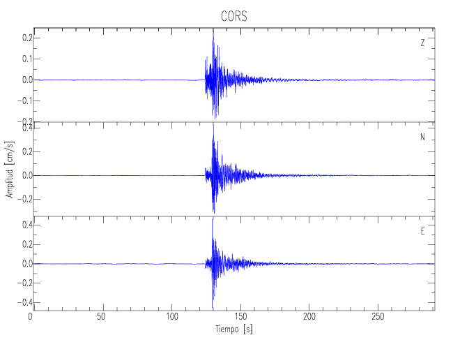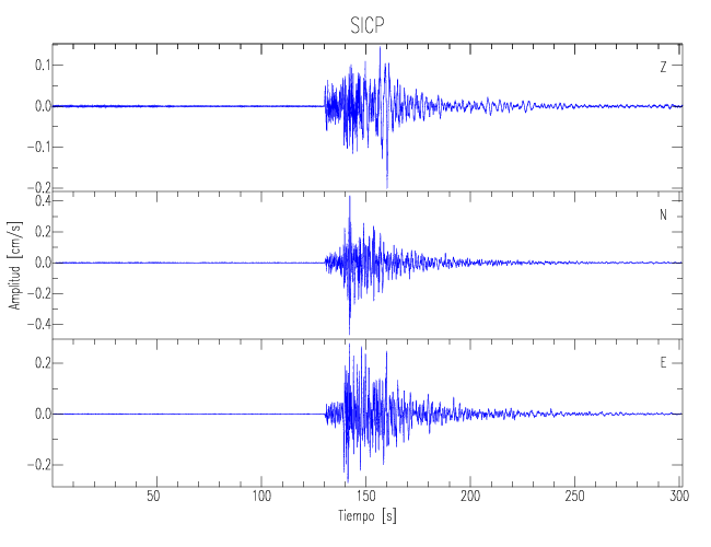 Los registros de velocidad se obtienen de la integración de los datos de aceleración. Esta tabla contiene los valores de velocidad máxima (PGV por sus siglas en inglés) para cada componente en cm/s. Las estaciones se listan en orden alfabético y corresponden a los sitios en que el nivel de aceleración fue superior a los 5 cm/s2.