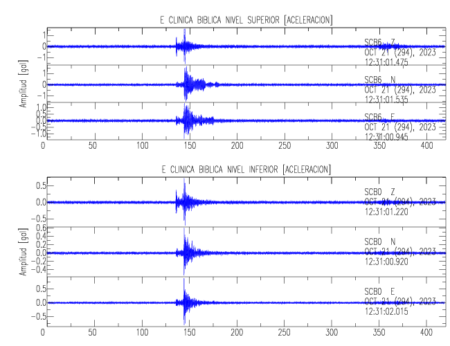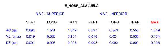 En esta sección se muestran los registros de aceleración (ac), velocidad (ve) y desplazamiento (de) de los niveles superior e inferior de varios edificios que se encuentran conectados al LIS ( http://www.estructuras.lis.ucr.ac.cr )