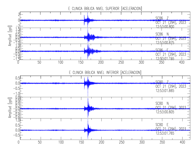 En esta sección se muestran los registros de aceleración (ac), velocidad (ve) y desplazamiento (de) de los niveles superior e inferior de varios edificios que se encuentran conectados al LIS ( http://www.estructuras.lis.ucr.ac.cr )