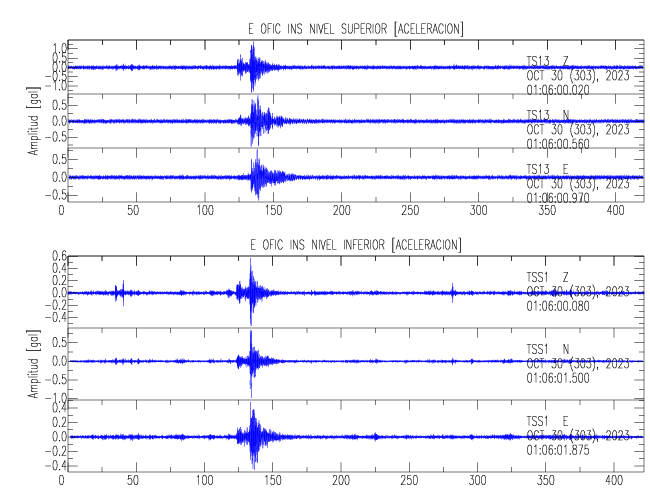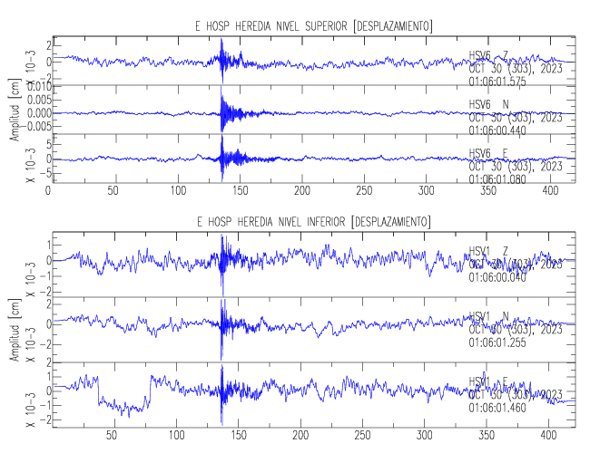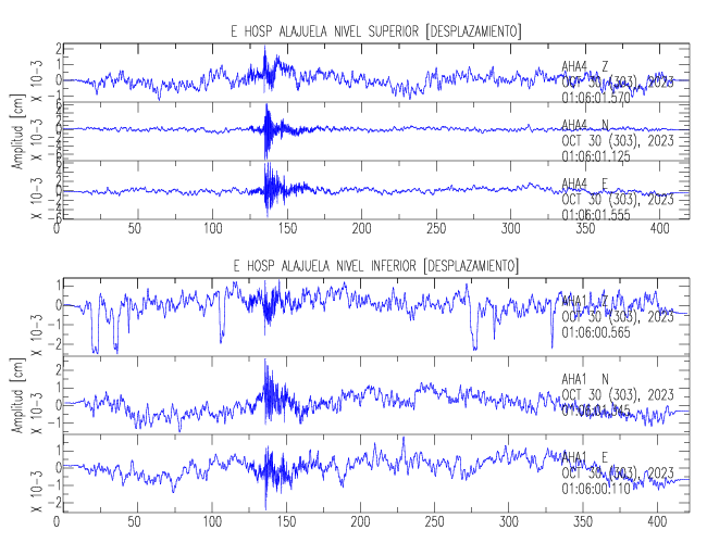 En esta sección se muestran los registros de aceleración (ac), velocidad (ve) y desplazamiento (de) de los niveles superior e inferior de varios edificios que se encuentran conectados al LIS ( http://www.estructuras.lis.ucr.ac.cr )