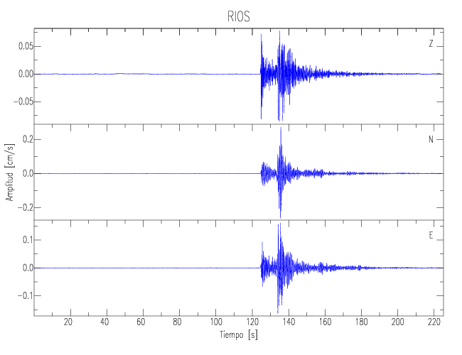 Los registros de velocidad se obtienen de la integración de los datos de aceleración. Esta tabla contiene los valores de velocidad máxima (PGV por sus siglas en inglés) para cada componente en cm/s. Las estaciones se listan en orden alfabético y corresponden a los sitios en que el nivel de aceleración fue superior a los 5 cm/s2.