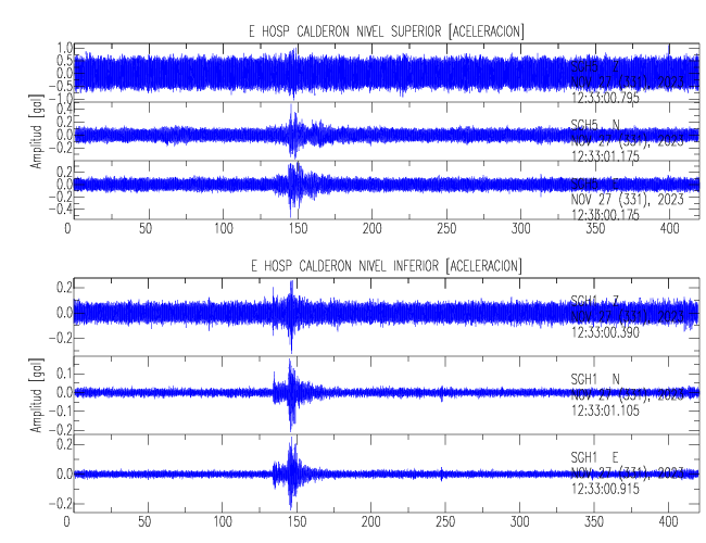 En esta sección se muestran los registros de aceleración (ac), velocidad (ve) y desplazamiento (de) de los niveles superior e inferior de varios edificios que se encuentran conectados al LIS ( http://www.estructuras.lis.ucr.ac.cr )