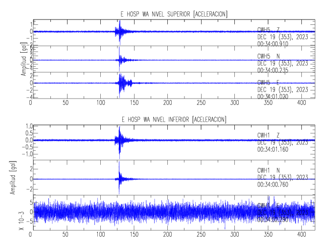 En esta sección se muestran los registros de aceleración (ac), velocidad (ve) y desplazamiento (de) de los niveles superior e inferior de varios edificios que se encuentran conectados al LIS ( http://www.estructuras.lis.ucr.ac.cr )