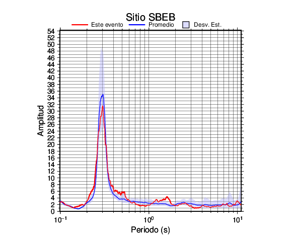 Los resultados que se presentan aquí fueron obtenidos luego de dividir las componentes horizontales entre la componente vertical (conocido como técnica H/V). Se grafica tanto el efecto de sitio del sismo registrado como el valor promedio en cada estación y su correspondiente desviación estándar.
