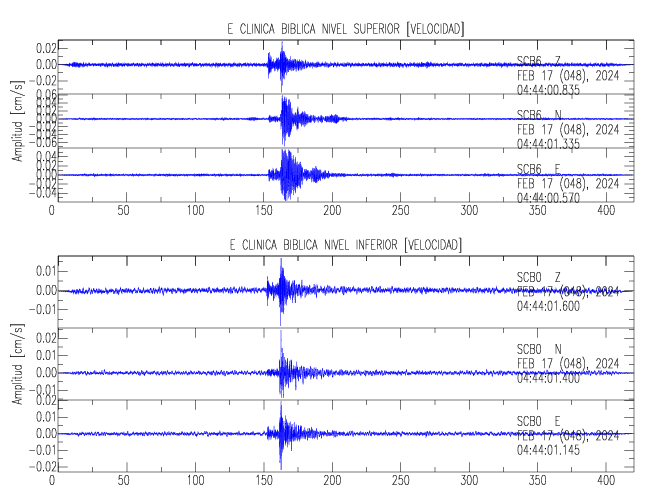 En esta sección se muestran los registros de aceleración (ac), velocidad (ve) y desplazamiento (de) de los niveles superior e inferior de varios edificios que se encuentran conectados al LIS ( http://www.estructuras.lis.ucr.ac.cr )