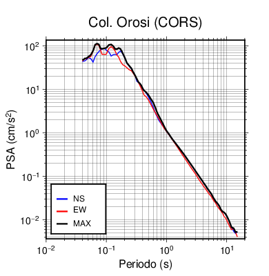 En los siguientes gráficos, la traza verde es el espectro propuesto por el CSCR-2010, la traza negra es el espectro máximo de este sismo. El valor de la amplitud está dado en pseudoaceleración en cm/s2.