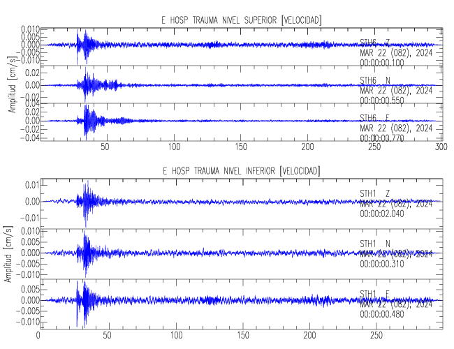 En esta sección se muestran los registros de aceleración (ac), velocidad (ve) y desplazamiento (de) de los niveles superior e inferior de varios edificios que se encuentran conectados al LIS ( http://www.estructuras.lis.ucr.ac.cr )