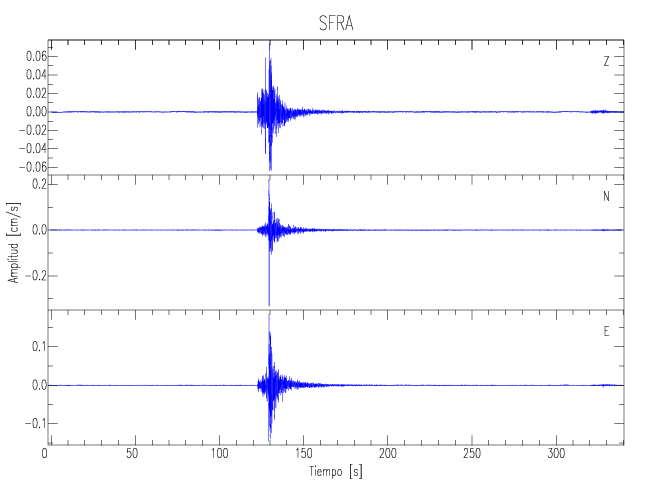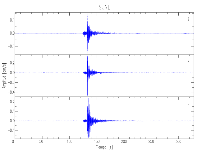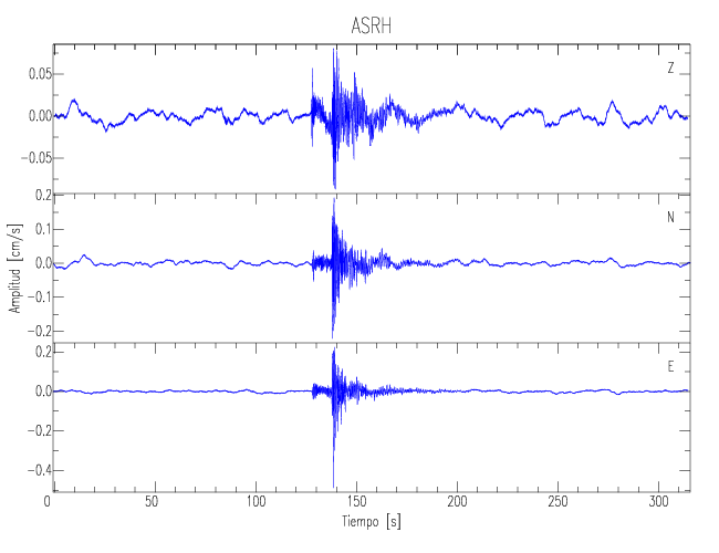 Los registros de velocidad se obtienen de la integración de los datos de aceleración. Esta tabla contiene los valores de velocidad máxima (PGV por sus siglas en inglés) para cada componente en cm/s. Las estaciones se listan en orden alfabético y corresponden a los sitios en que el nivel de aceleración fue superior a los 5 cm/s2.