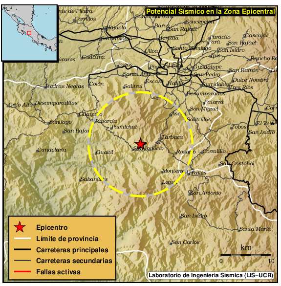 A 10km a la redonda del epicentro, el LISUCR ha localizado también los siguientes sismos ocurridos desde el 2010. Todos ellos con profundidades superiores a los 40km.