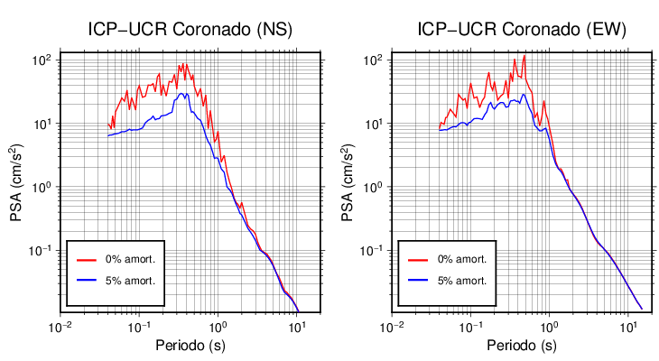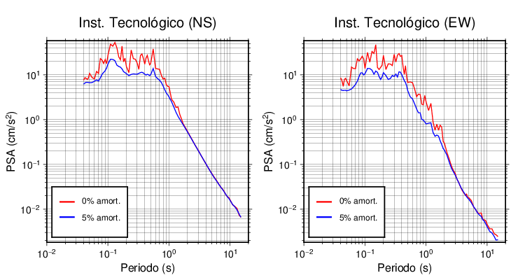 Esta tabla contiene los valores de PSA en cm/s2 calculados del espectro de respuesta con 5% de amortiguamiento a 1 segundo (se muestran los valores para aquellas estaciones que tuvieron un valor de aceleración superior a 5 cm/s2).