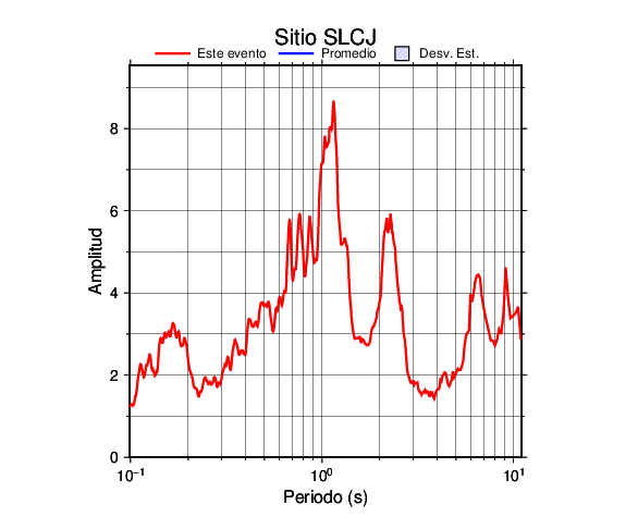 Los resultados que se presentan aquí fueron obtenidos luego de dividir las componentes horizontales entre la componente vertical (conocido como técnica H/V). Se grafica tanto el efecto de sitio del sismo registrado como el valor promedio en cada estación y su correspondiente desviación estándar.