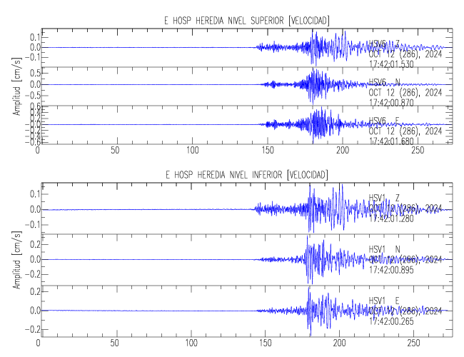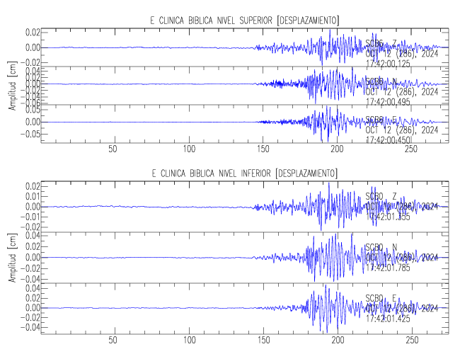 En esta sección se muestran los registros de aceleración (ac), velocidad (ve) y desplazamiento (de) de los niveles superior e inferior de varios edificios que se encuentran conectados al LIS ( http://www.estructuras.lis.ucr.ac.cr )