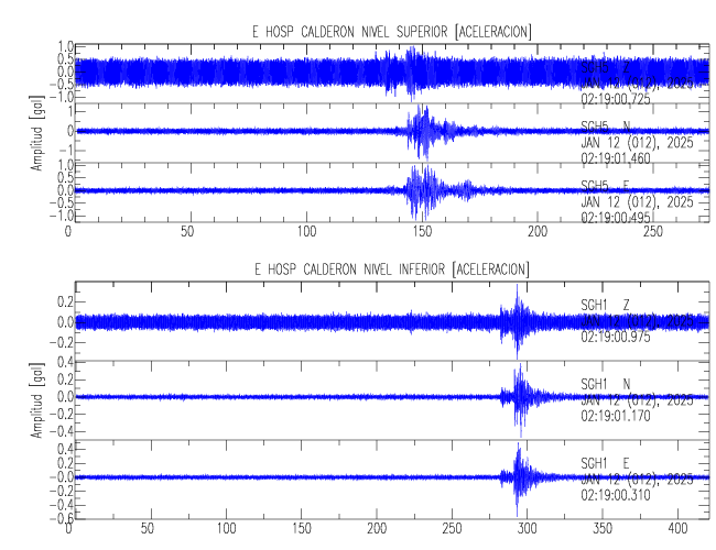 En esta sección se muestran los registros de aceleración (ac), velocidad (ve) y desplazamiento (de) de los niveles superior e inferior de varios edificios que se encuentran conectados al LIS ( http://www.estructuras.lis.ucr.ac.cr )