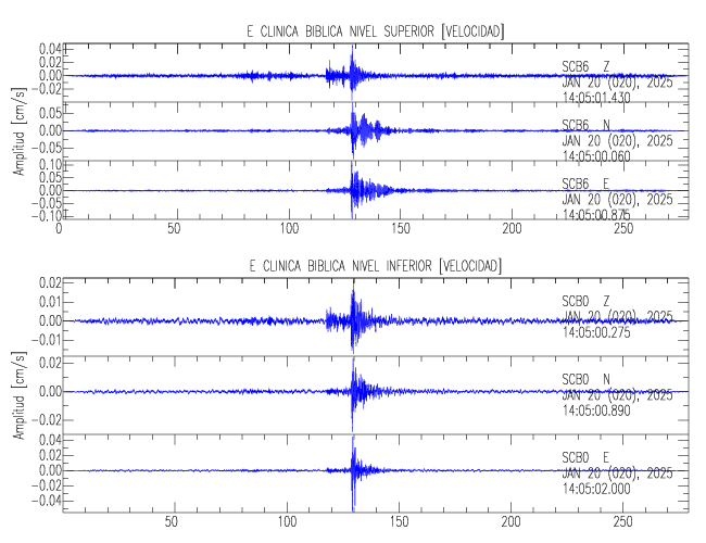 En esta sección se muestran los registros de aceleración (ac), velocidad (ve) y desplazamiento (de) de los niveles superior e inferior de varios edificios que se encuentran conectados al LIS ( http://www.estructuras.lis.ucr.ac.cr )