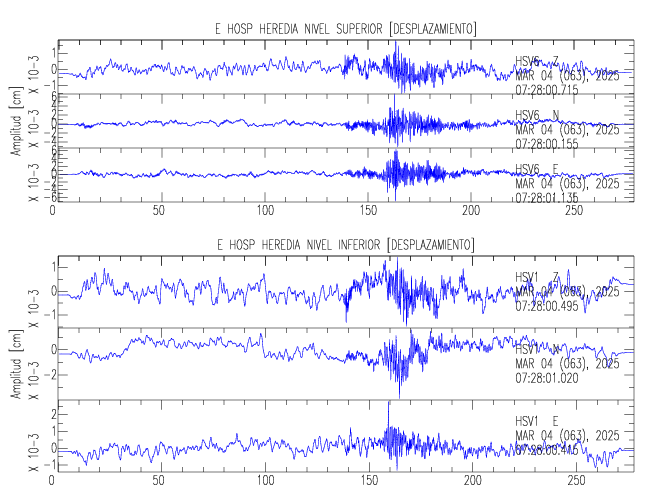 En esta sección se muestran los registros de aceleración (ac), velocidad (ve) y desplazamiento (de) de los niveles superior e inferior de varios edificios que se encuentran conectados al LIS ( http://www.estructuras.lis.ucr.ac.cr )
