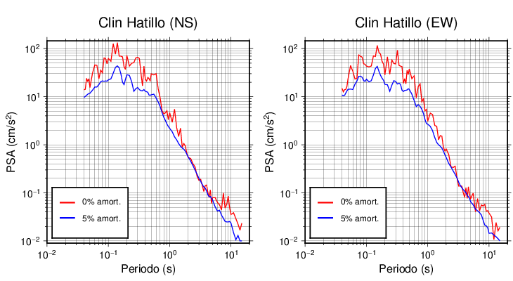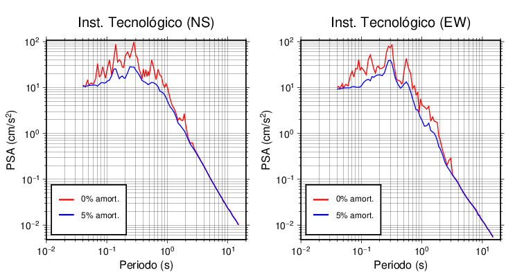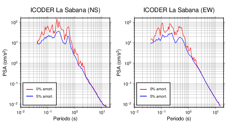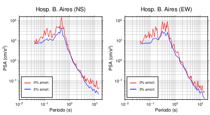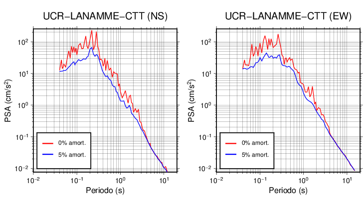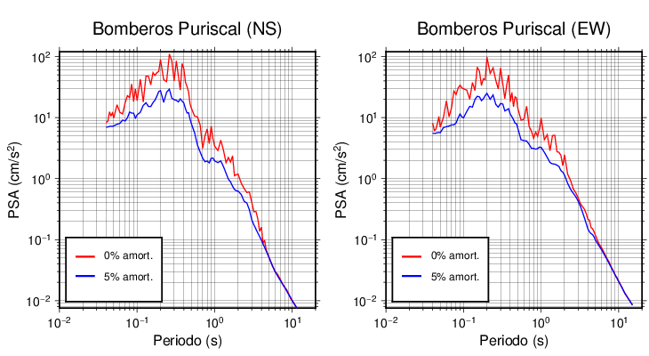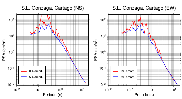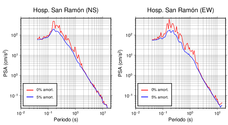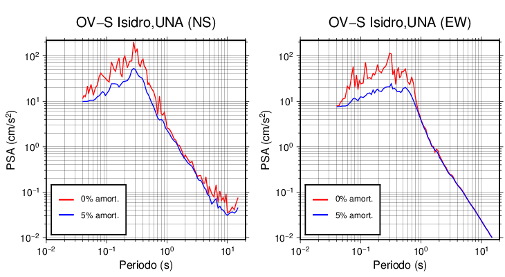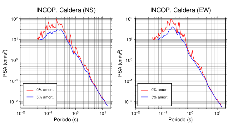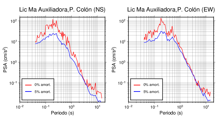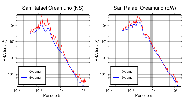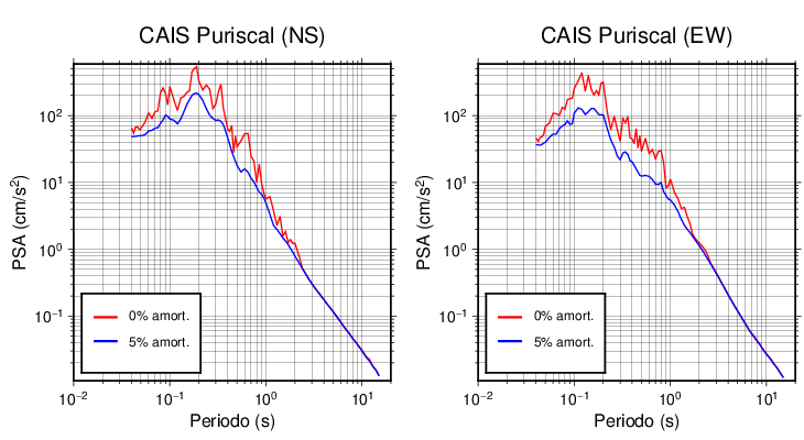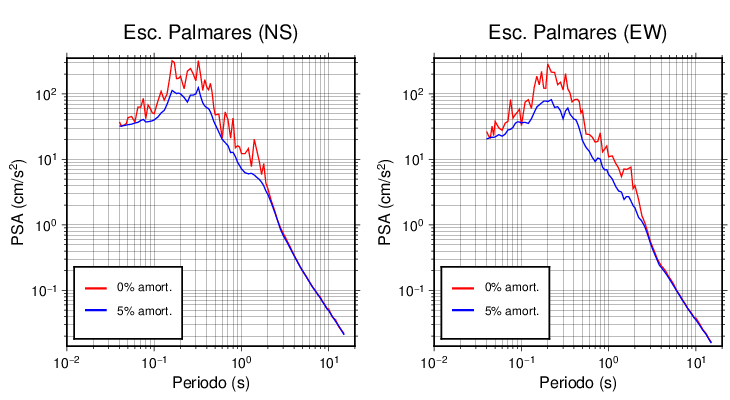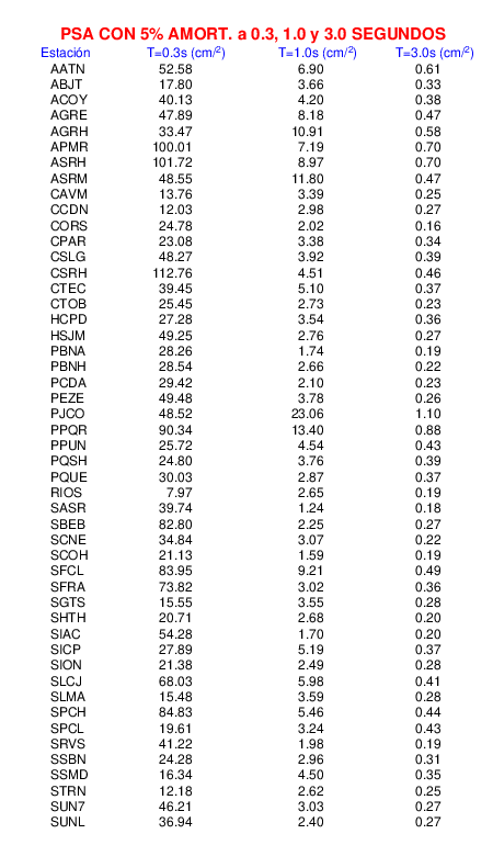 Esta tabla contiene los valores de PSA en cm/s2 calculados del espectro de respuesta con 5% de amortiguamiento a 1 segundo (se muestran los valores para aquellas estaciones que tuvieron un valor de aceleración superior a 5 cm/s2).