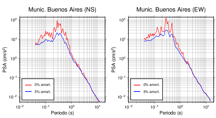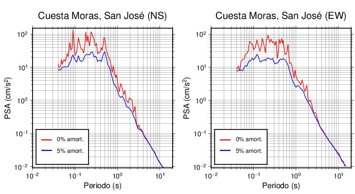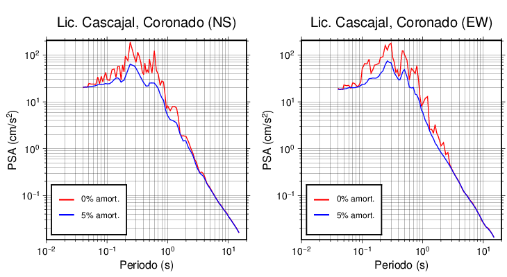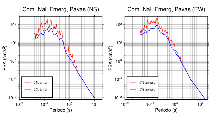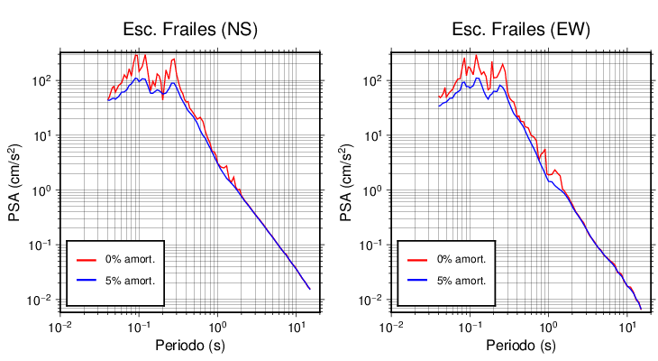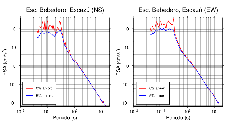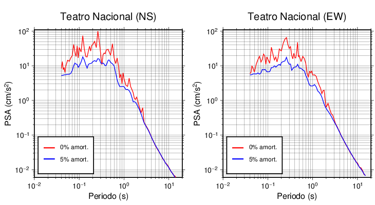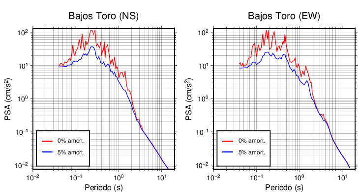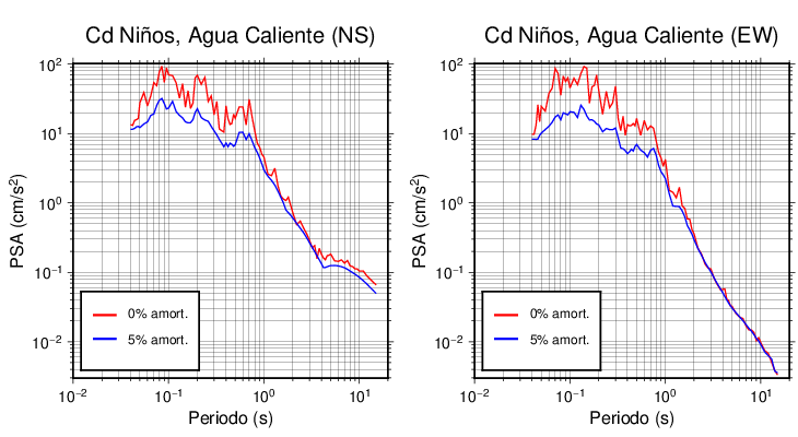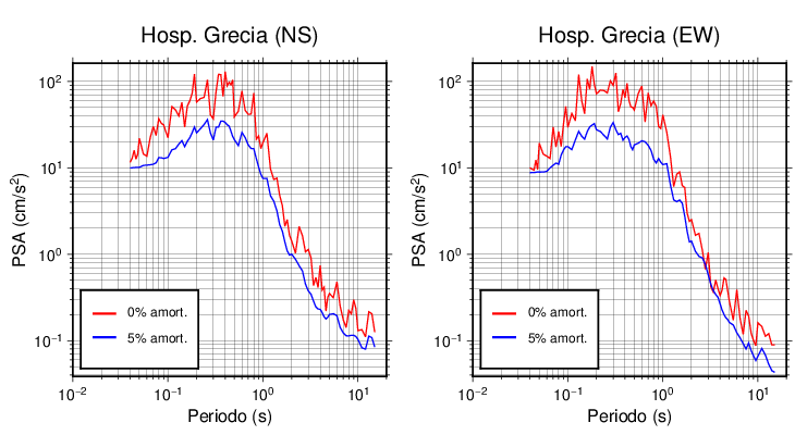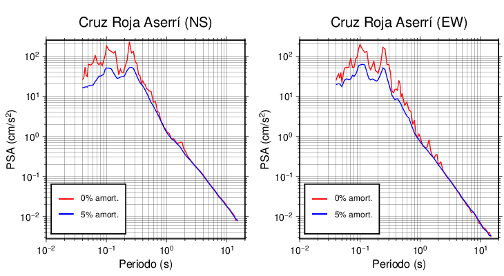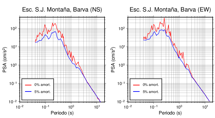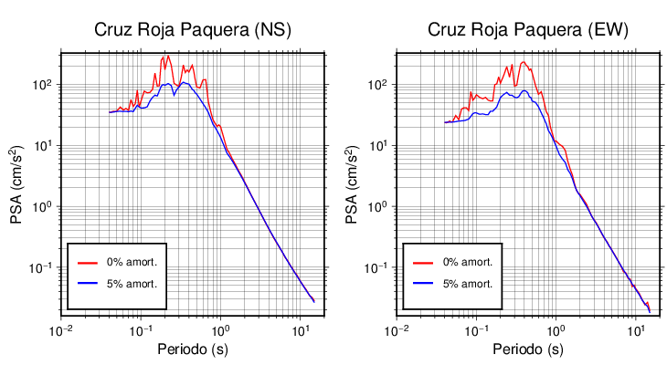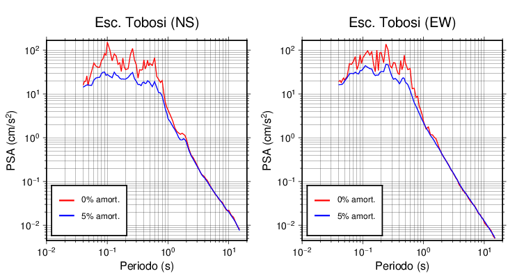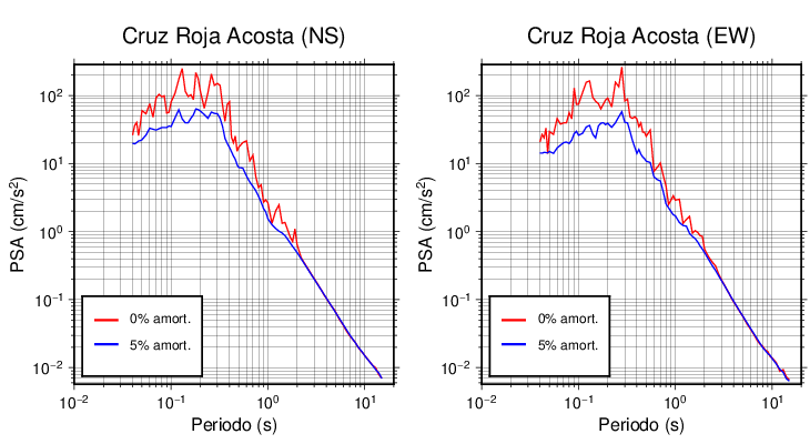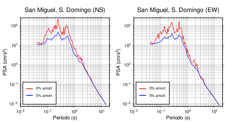 Esta tabla contiene los valores de PSA en cm/s2 calculados del espectro de respuesta con 5% de amortiguamiento a 1 segundo (se muestran los valores para aquellas estaciones que tuvieron un valor de aceleración superior a 5 cm/s2).