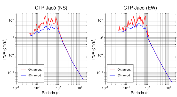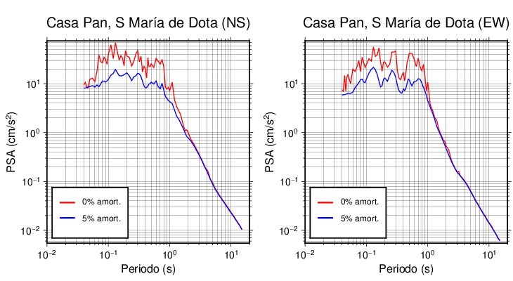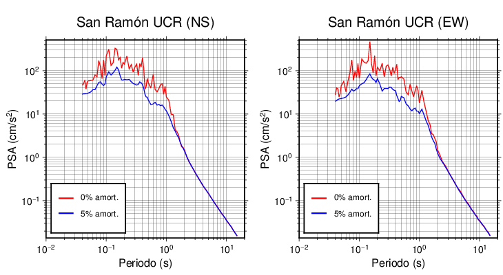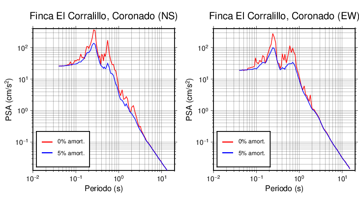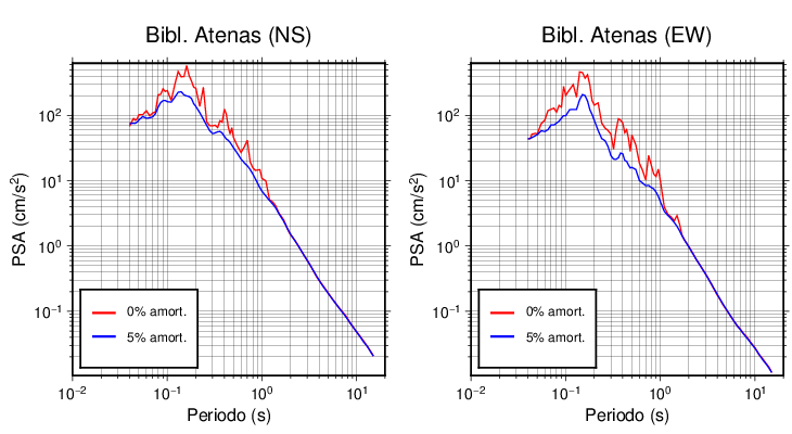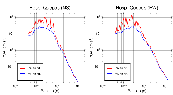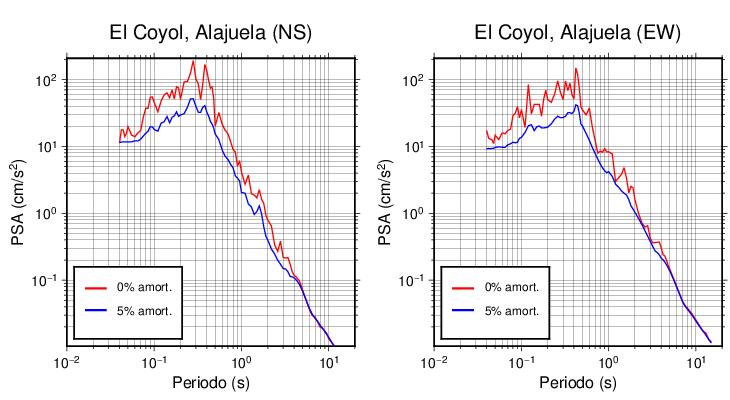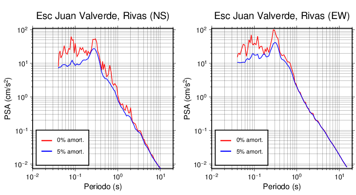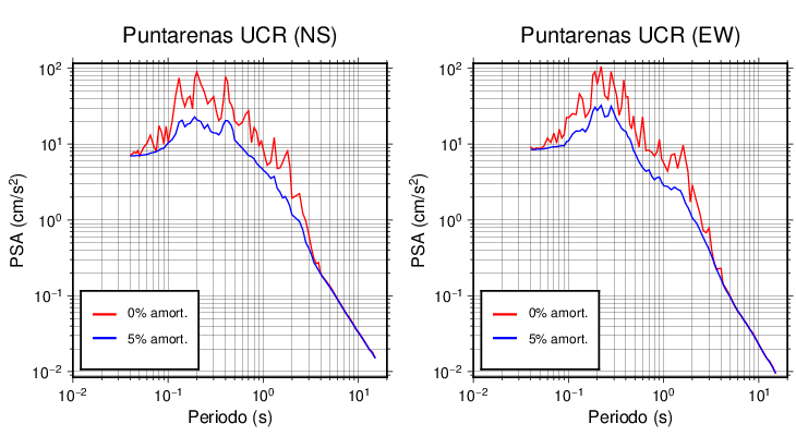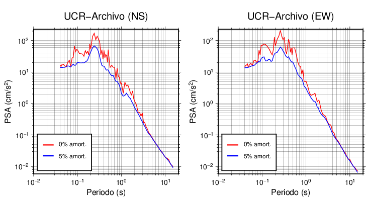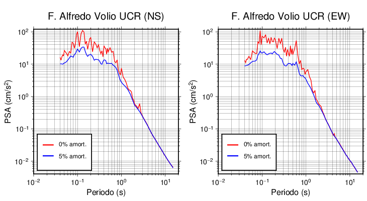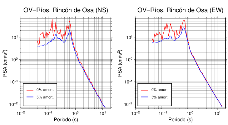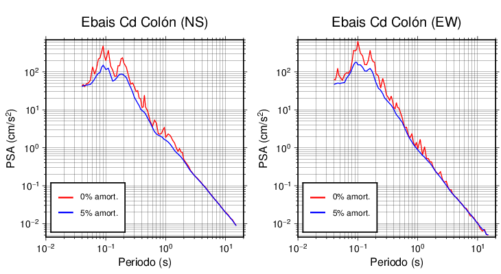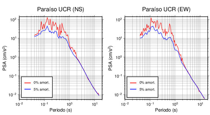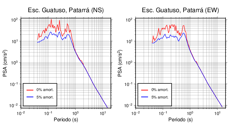 Esta tabla contiene los valores de PSA en cm/s2 calculados del espectro de respuesta con 5% de amortiguamiento a 1 segundo (se muestran los valores para aquellas estaciones que tuvieron un valor de aceleración superior a 5 cm/s2).