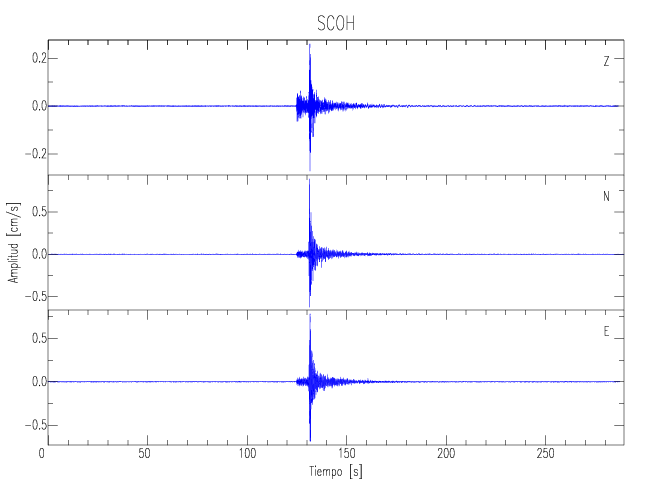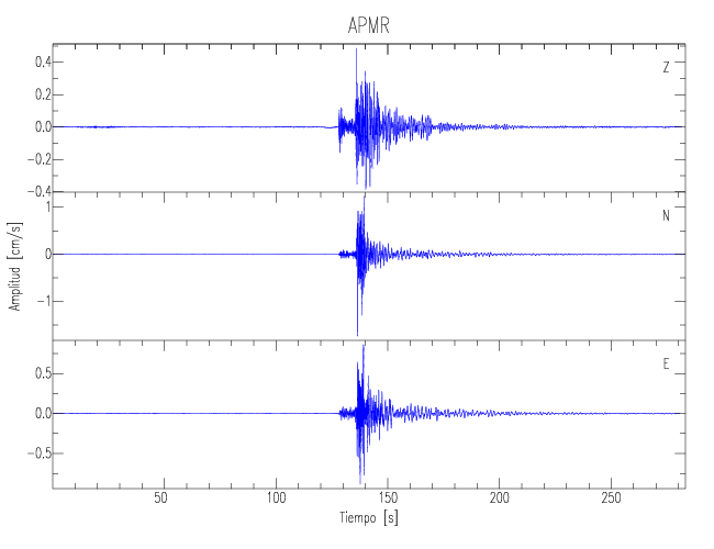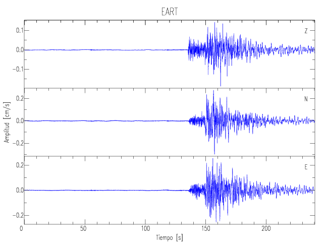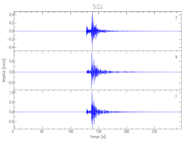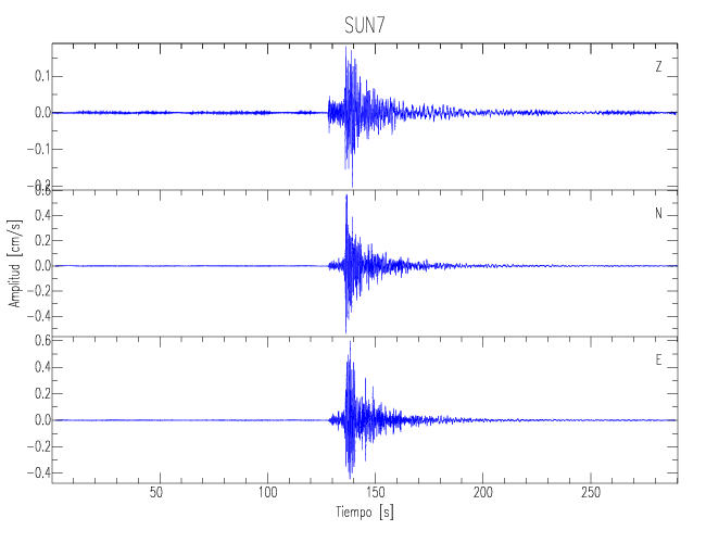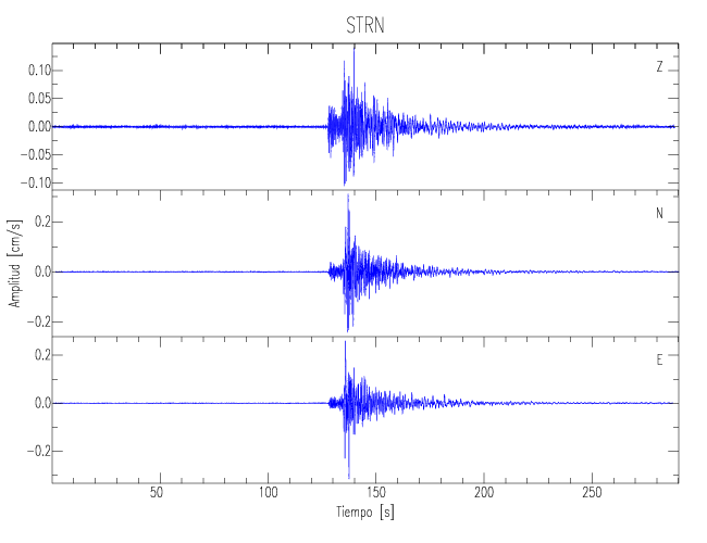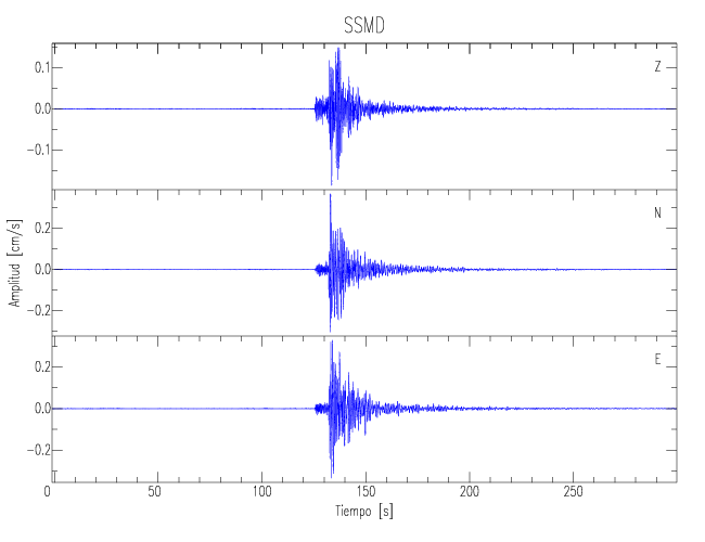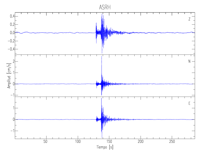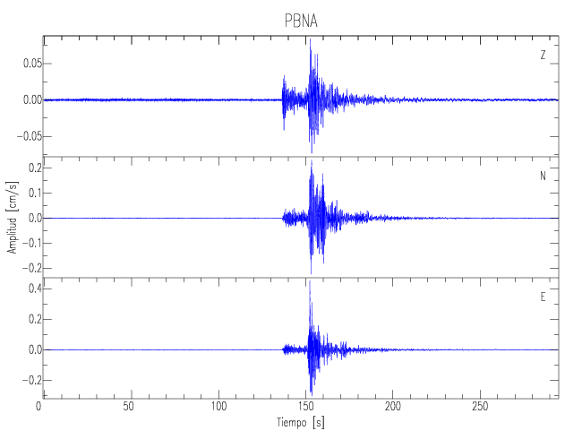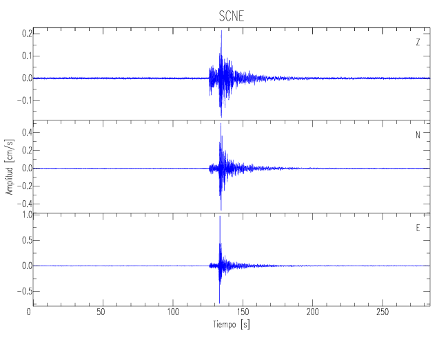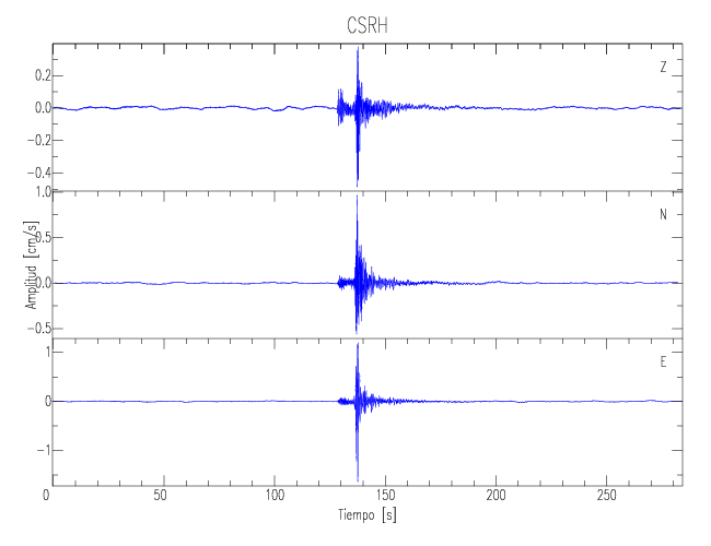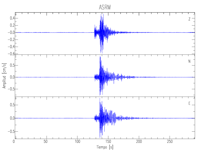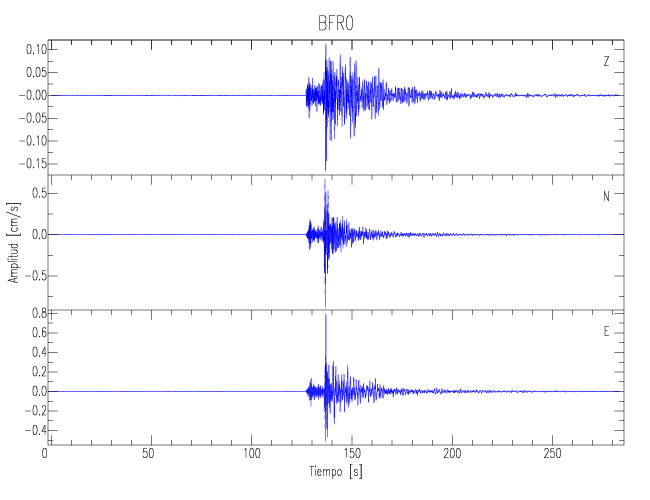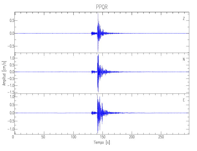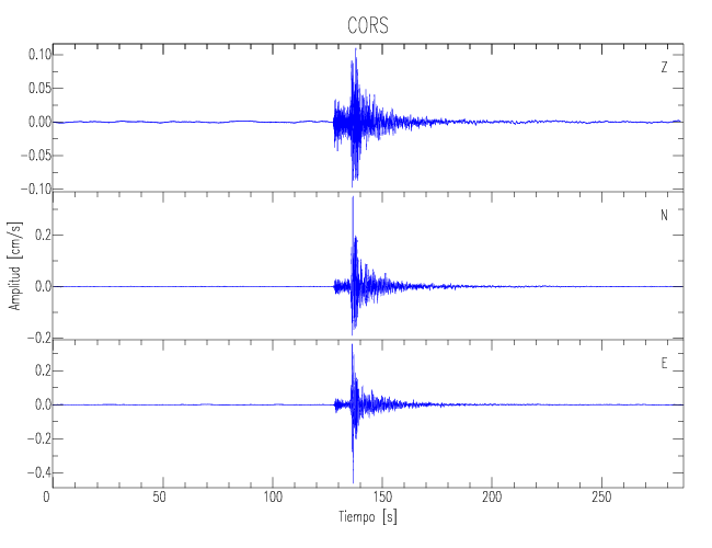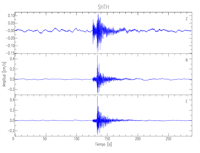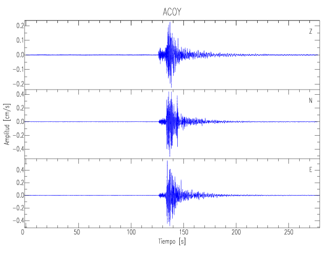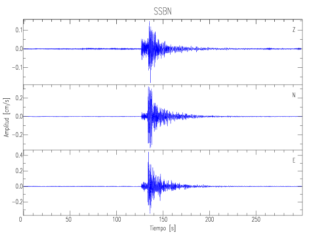 Los registros de velocidad se obtienen de la integración de los datos de aceleración. Esta tabla contiene los valores de velocidad máxima (PGV por sus siglas en inglés) para cada componente en cm/s. Las estaciones se listan en orden alfabético y corresponden a los sitios en que el nivel de aceleración fue superior a los 5 cm/s2.