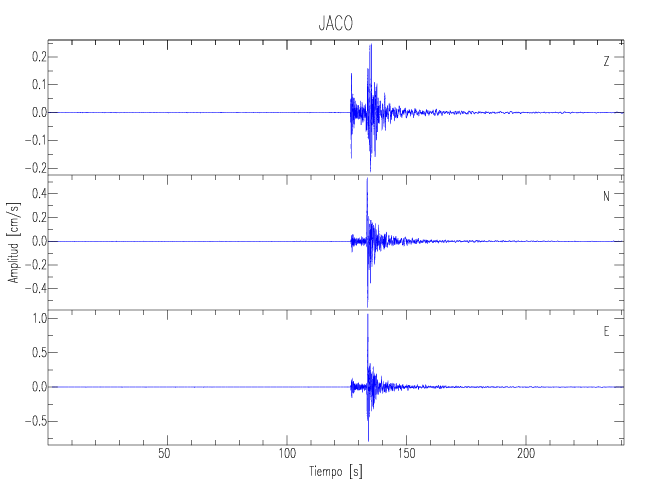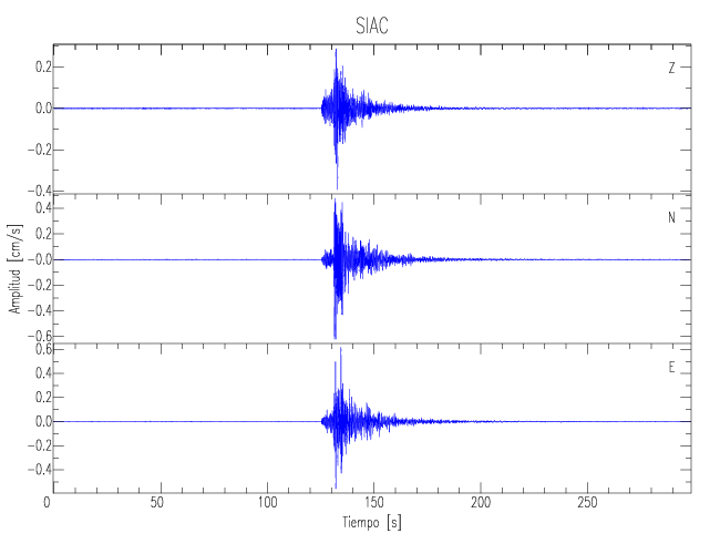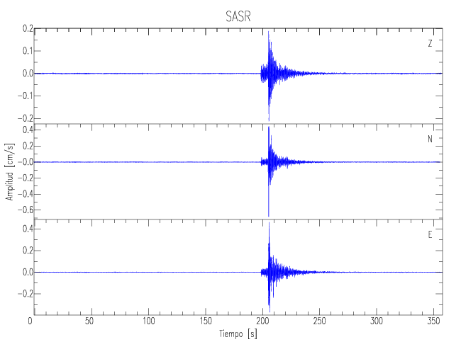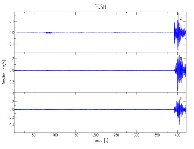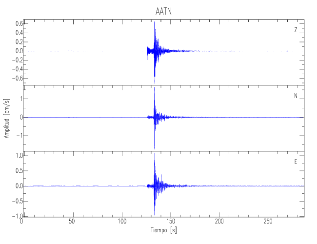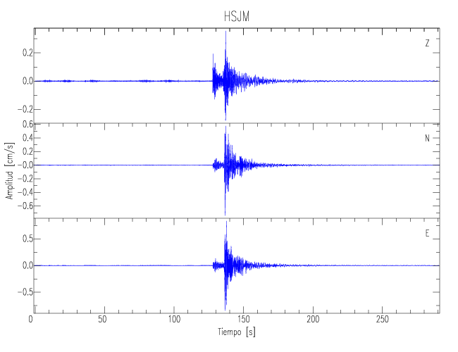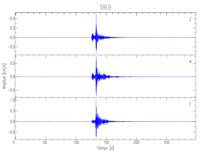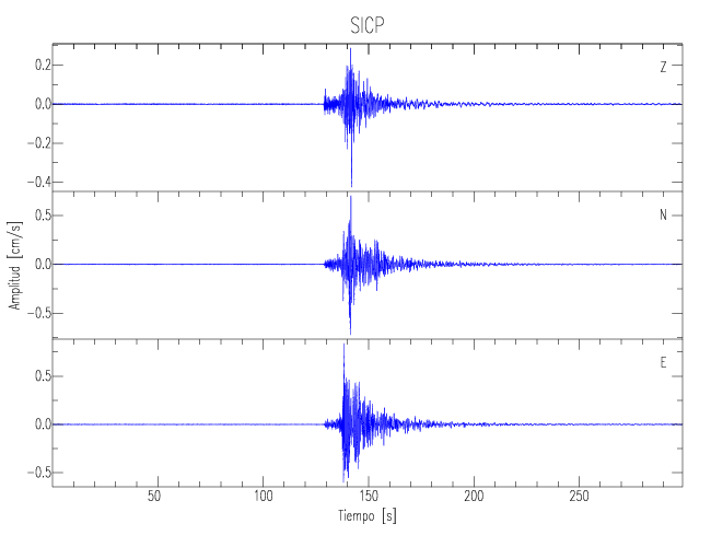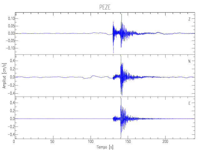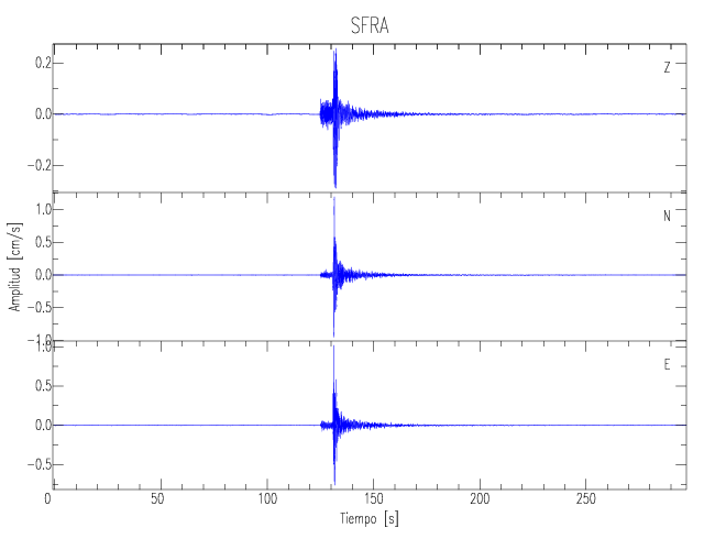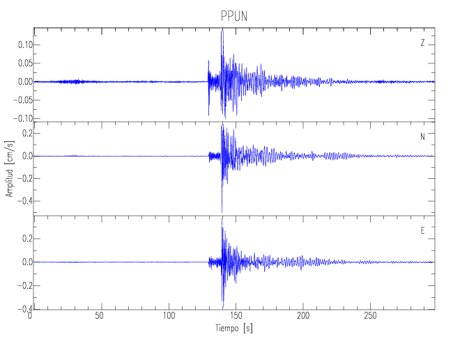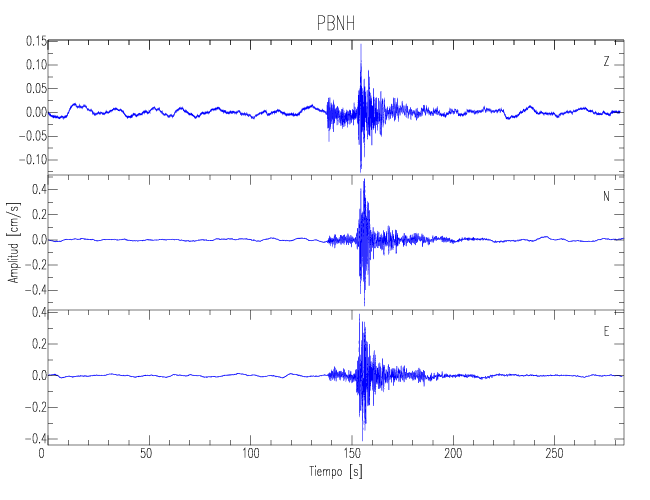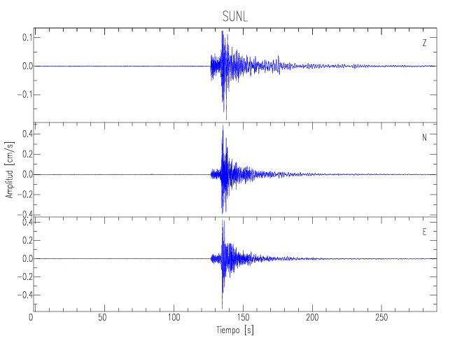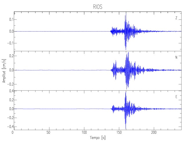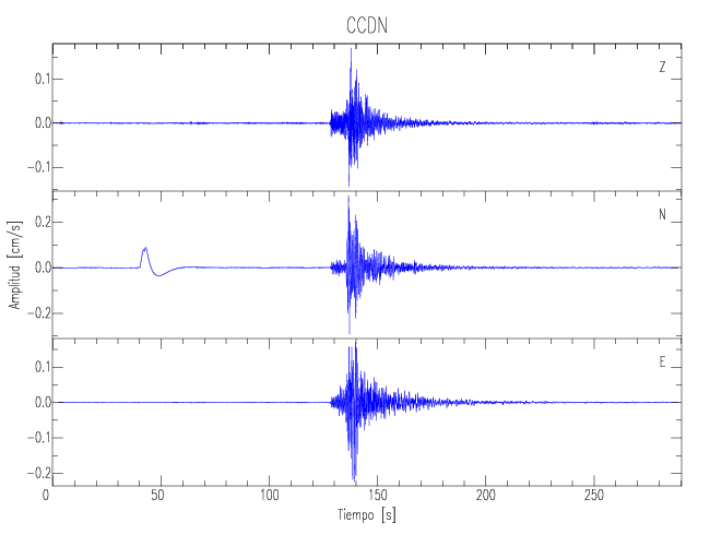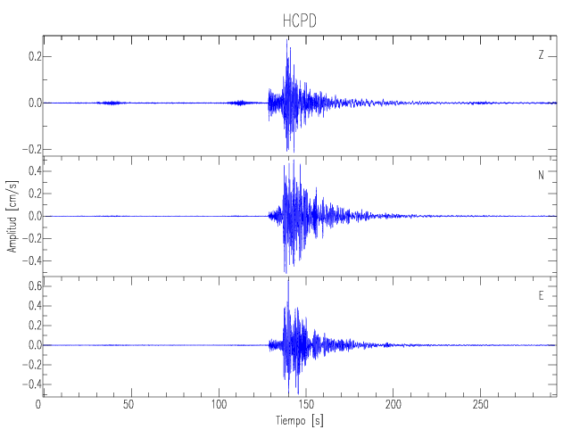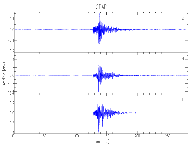 Los registros de velocidad se obtienen de la integración de los datos de aceleración. Esta tabla contiene los valores de velocidad máxima (PGV por sus siglas en inglés) para cada componente en cm/s. Las estaciones se listan en orden alfabético y corresponden a los sitios en que el nivel de aceleración fue superior a los 5 cm/s2.