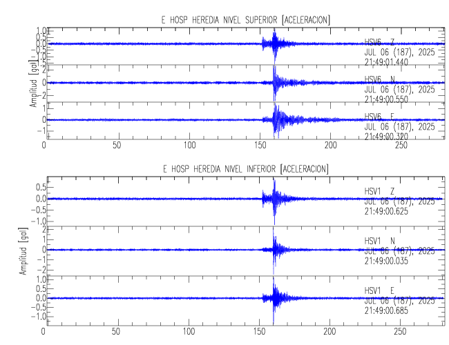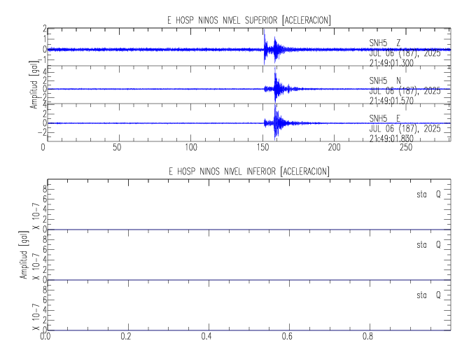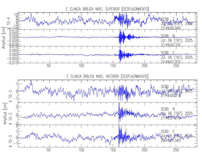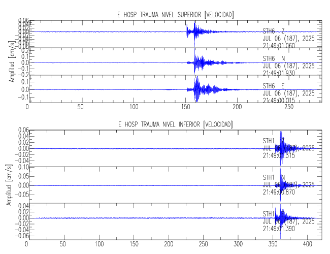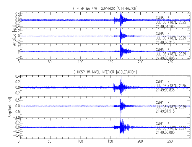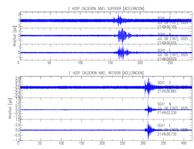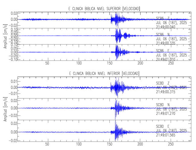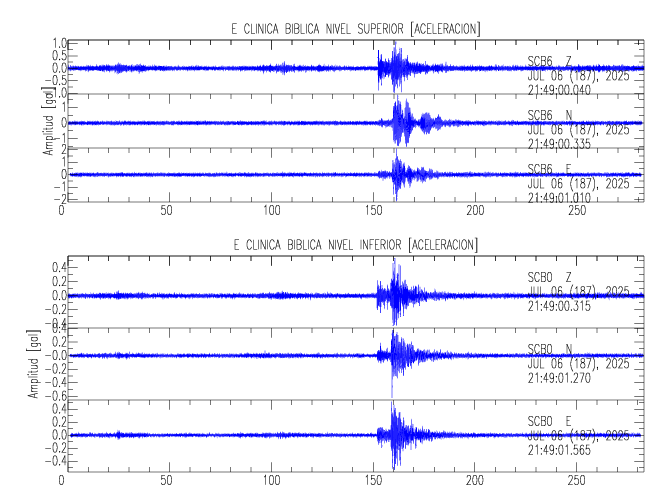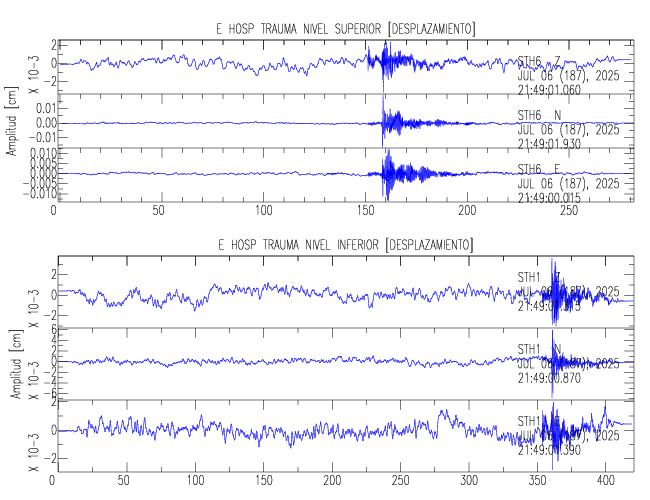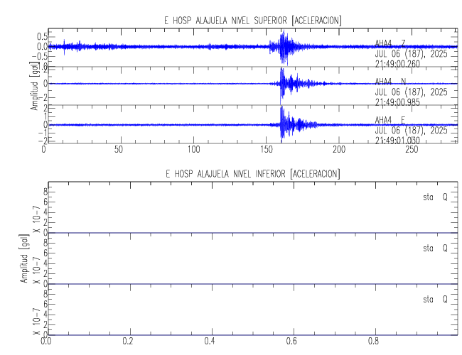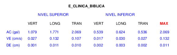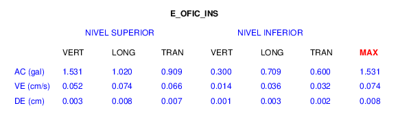 En esta sección se muestran los registros de aceleración (ac), velocidad (ve) y desplazamiento (de) de los niveles superior e inferior de varios edificios que se encuentran conectados al LIS ( http://www.estructuras.lis.ucr.ac.cr )