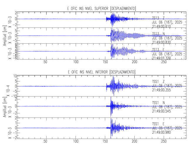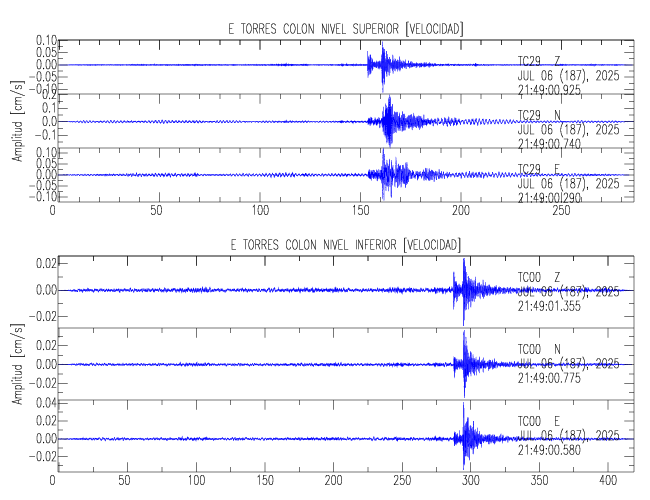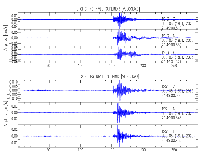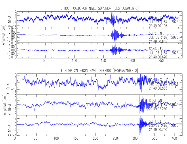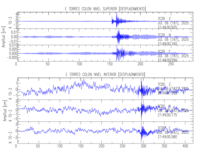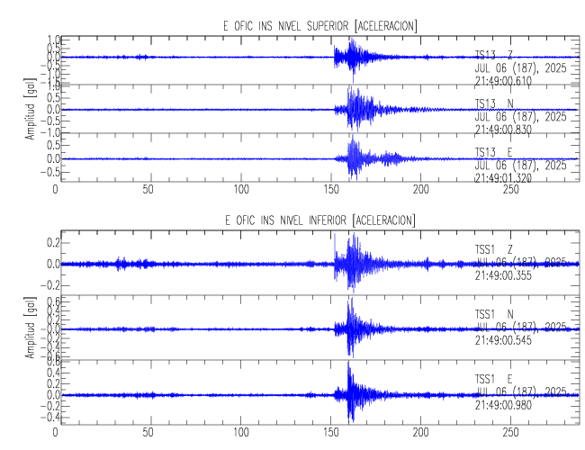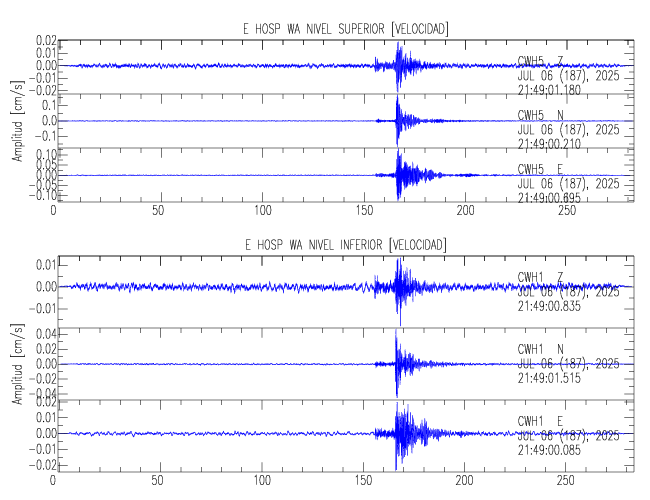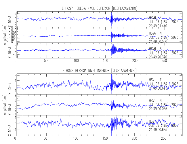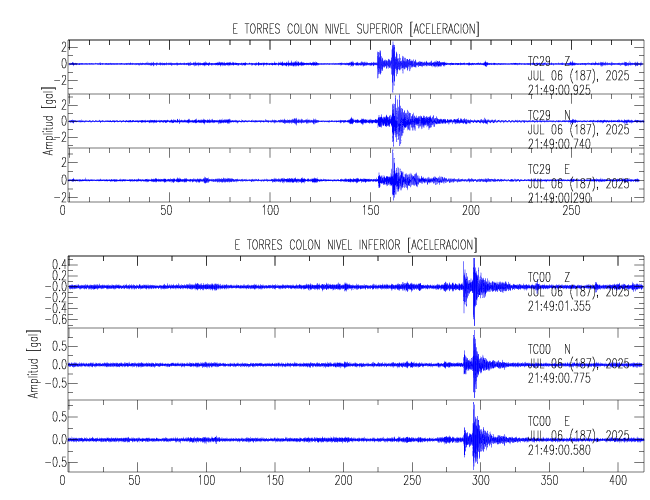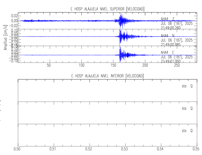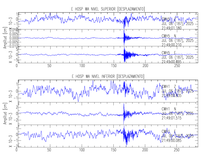 En esta sección se muestran los registros de aceleración (ac), velocidad (ve) y desplazamiento (de) de los niveles superior e inferior de varios edificios que se encuentran conectados al LIS ( http://www.estructuras.lis.ucr.ac.cr )