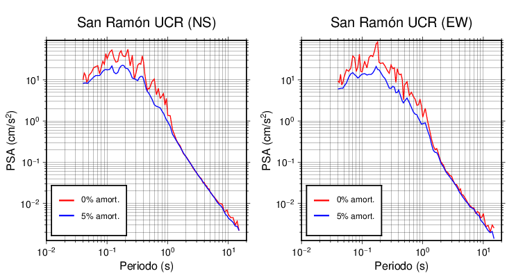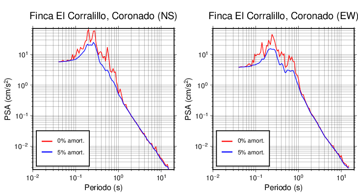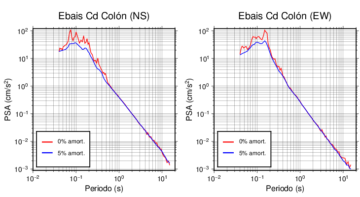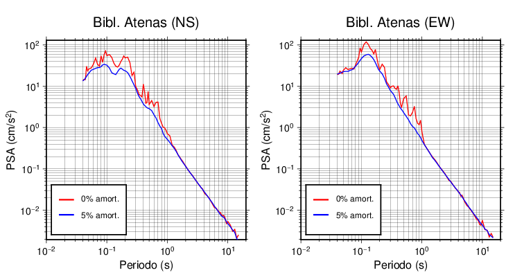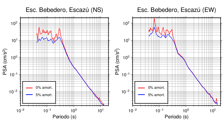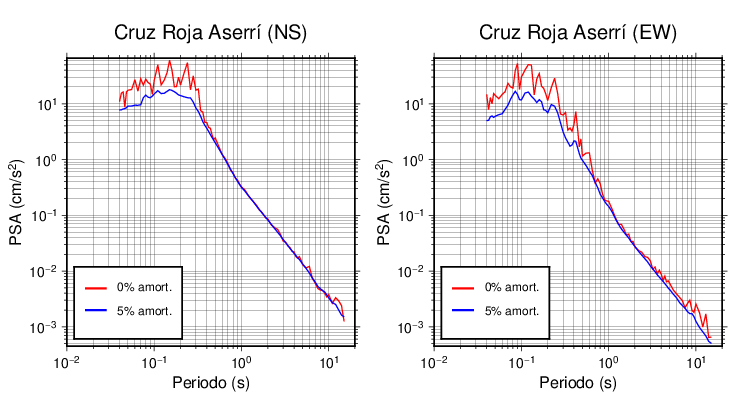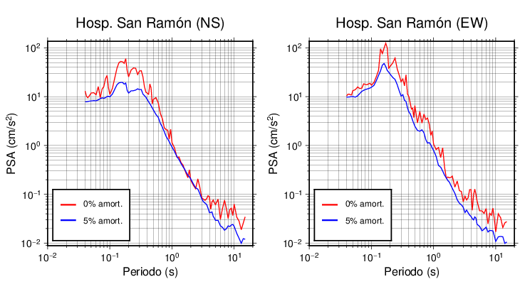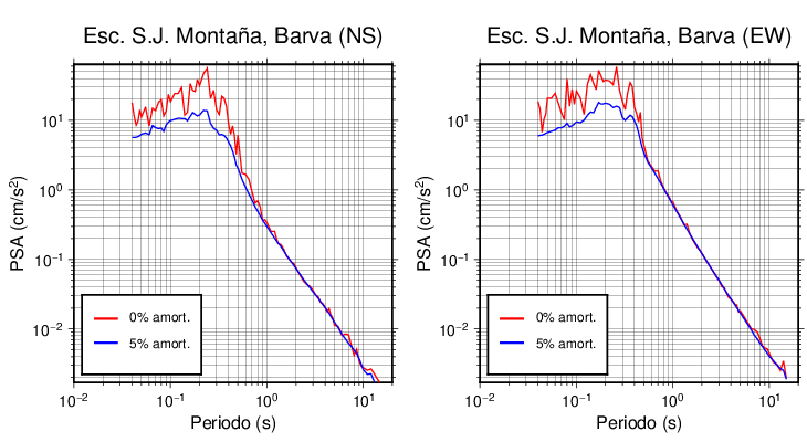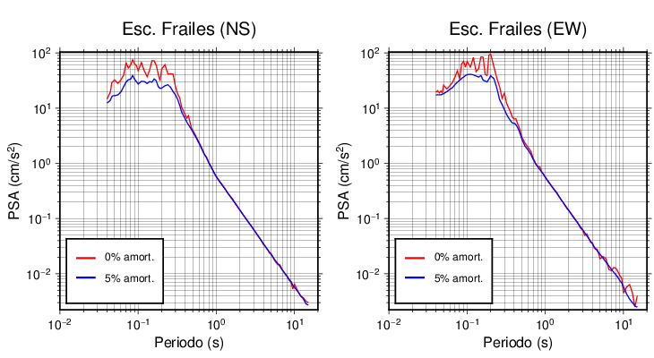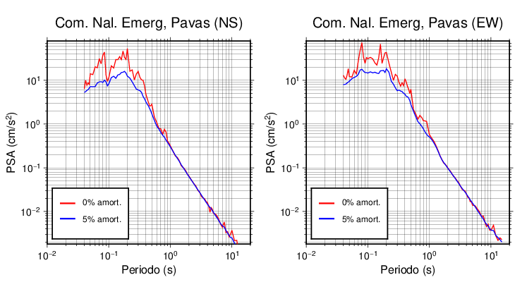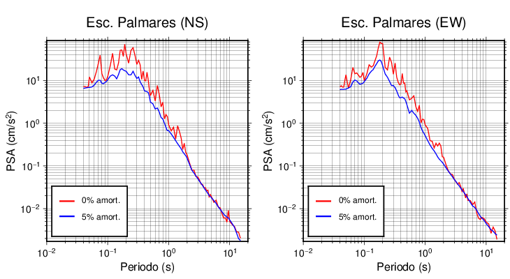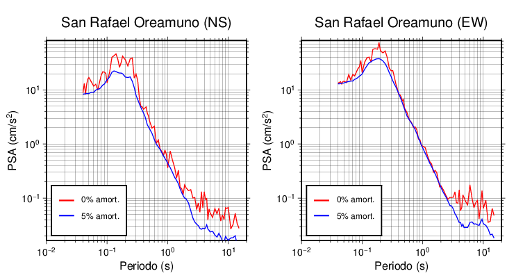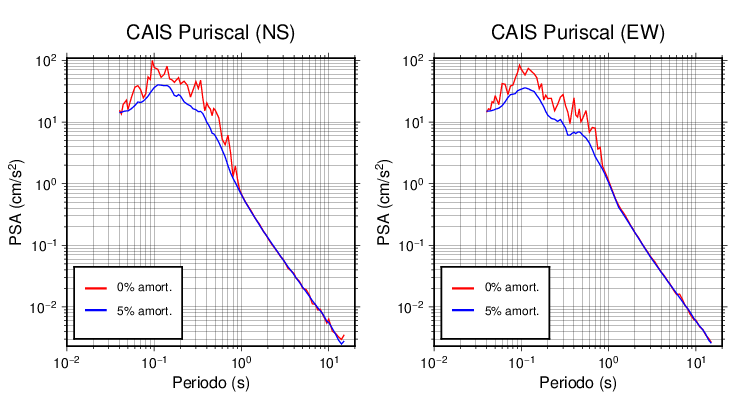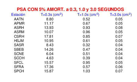 Esta tabla contiene los valores de PSA en cm/s2 calculados del espectro de respuesta con 5% de amortiguamiento a 1 segundo (se muestran los valores para aquellas estaciones que tuvieron un valor de aceleración superior a 5 cm/s2).