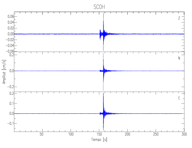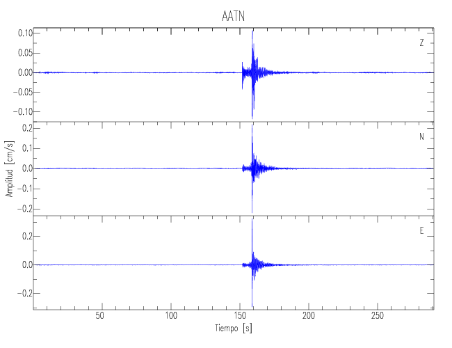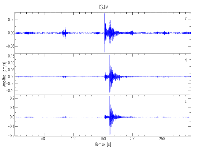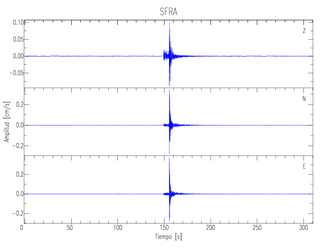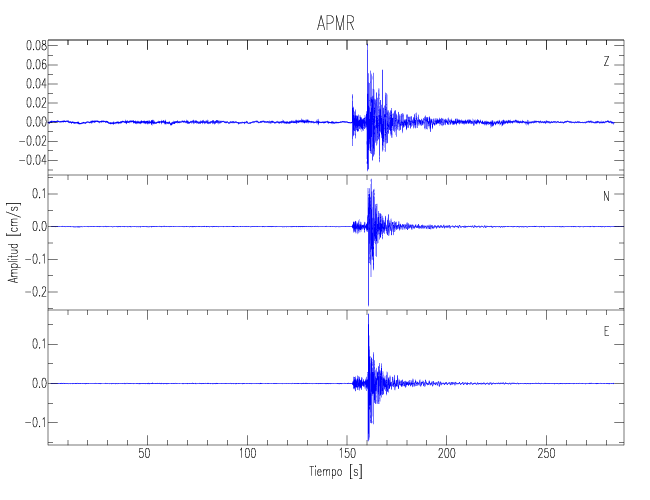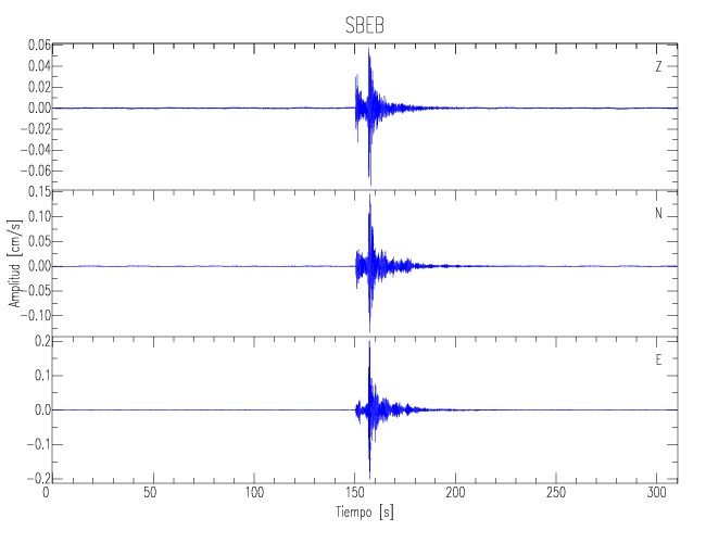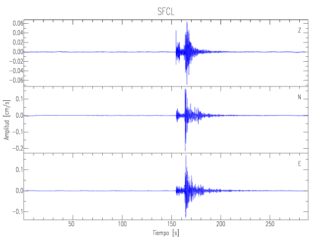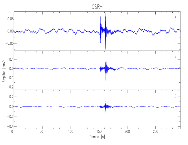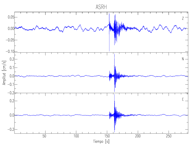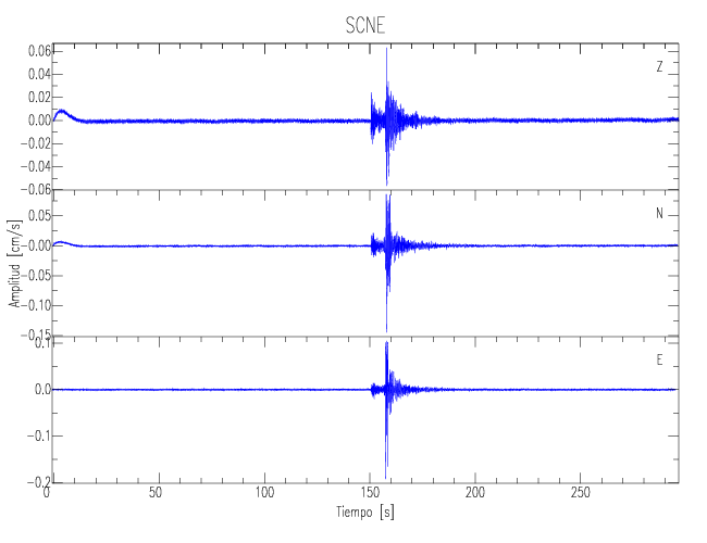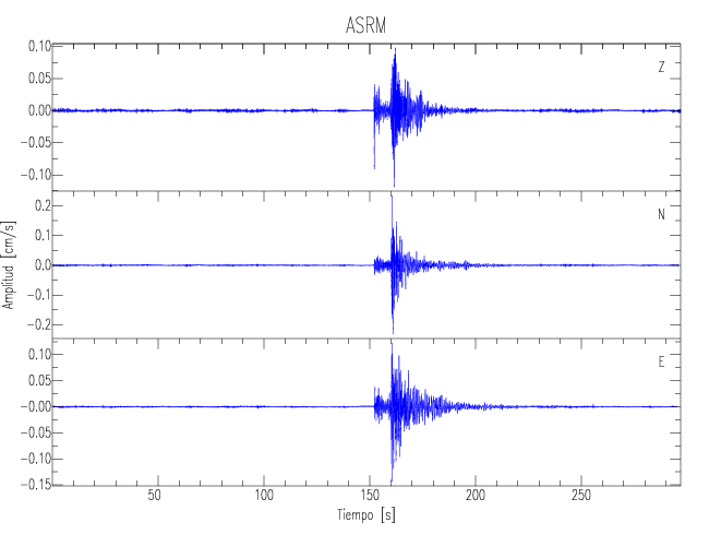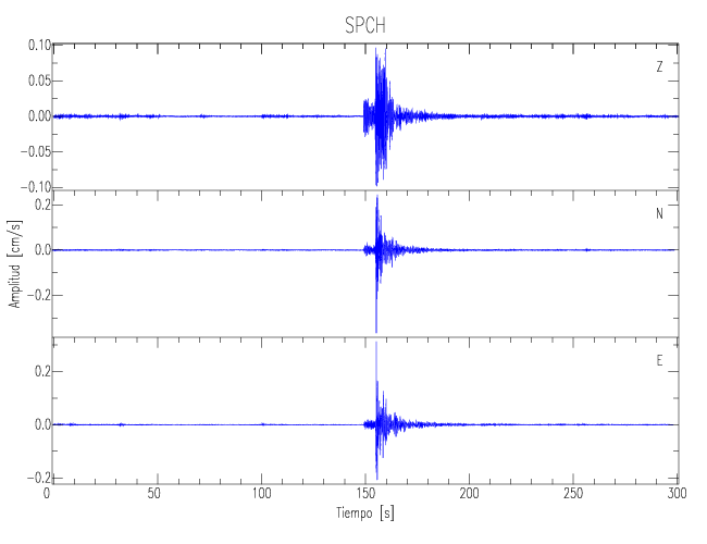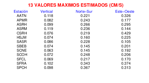Los registros de velocidad se obtienen de la integración de los datos de aceleración. Esta tabla contiene los valores de velocidad máxima (PGV por sus siglas en inglés) para cada componente en cm/s. Las estaciones se listan en orden alfabético y corresponden a los sitios en que el nivel de aceleración fue superior a los 5 cm/s2.