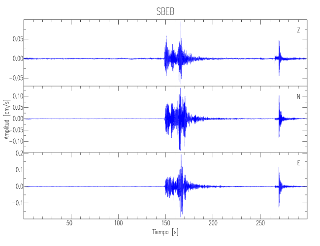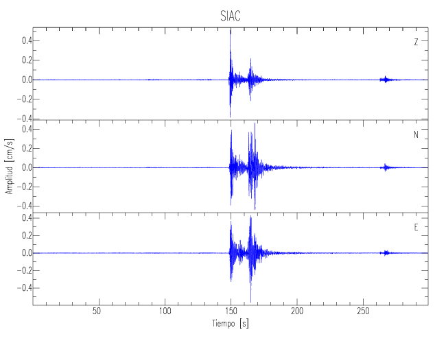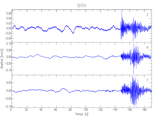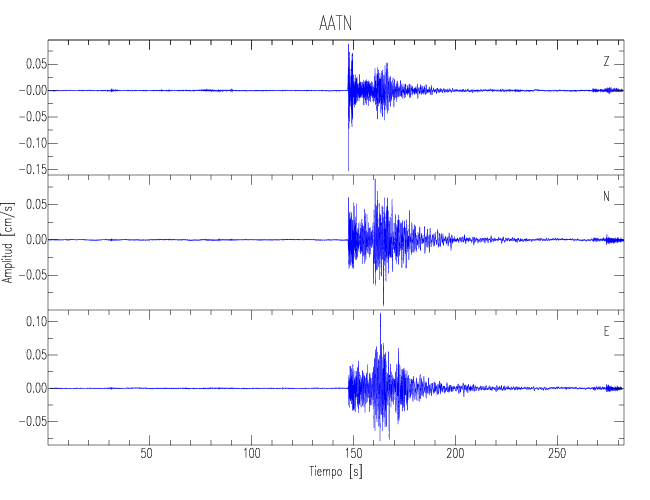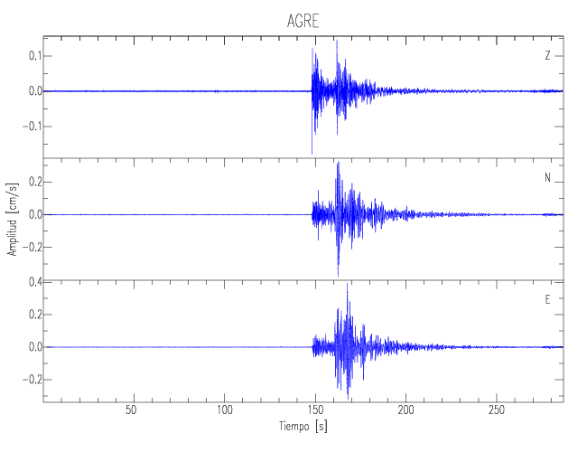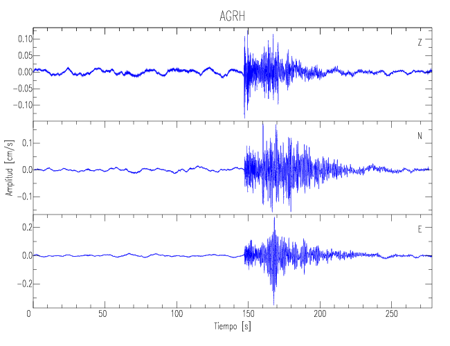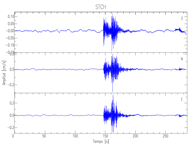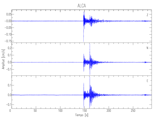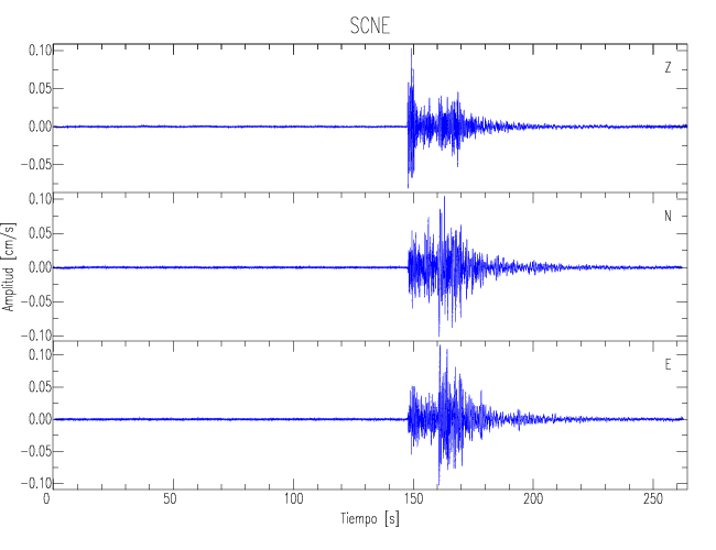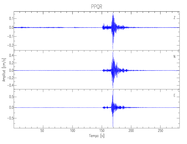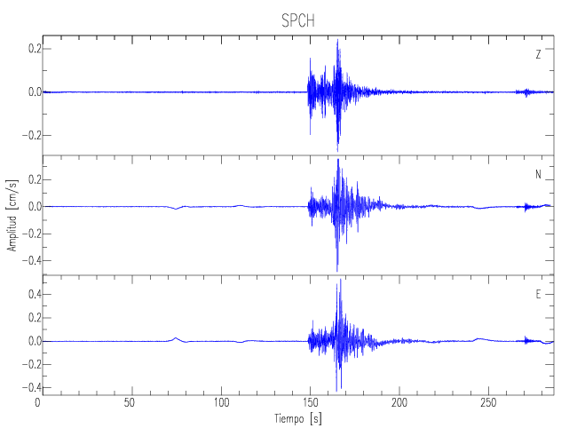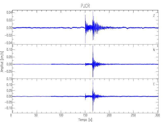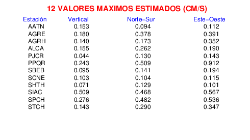 Los registros de velocidad se obtienen de la integración de los datos de aceleración. Esta tabla contiene los valores de velocidad máxima (PGV por sus siglas en inglés) para cada componente en cm/s. Las estaciones se listan en orden alfabético y corresponden a los sitios en que el nivel de aceleración fue superior a los 5 cm/s2.