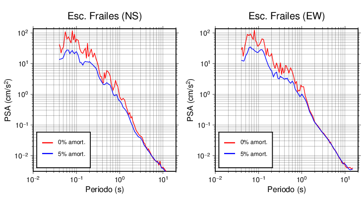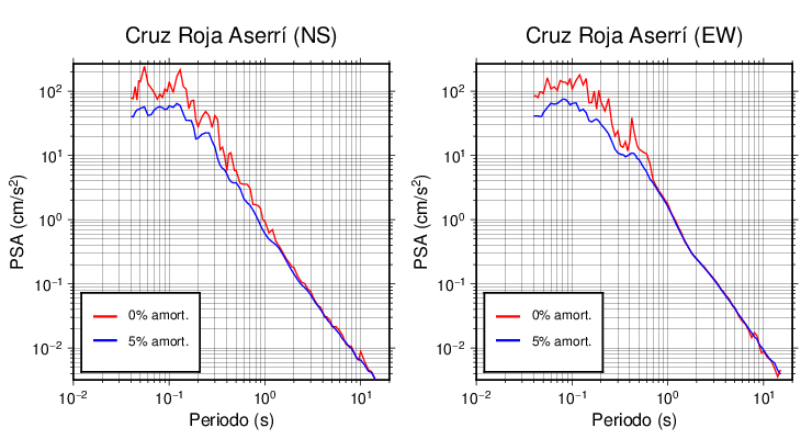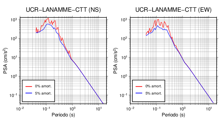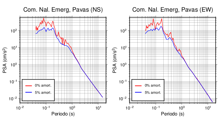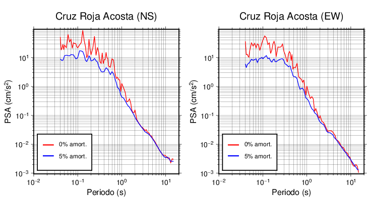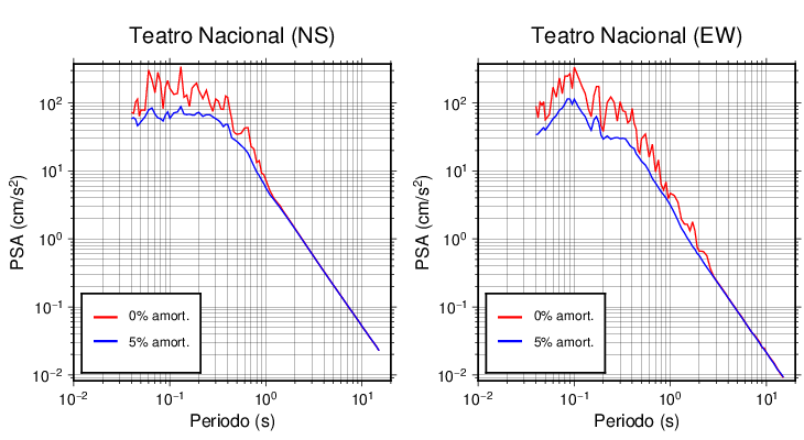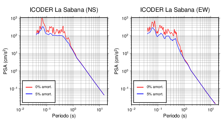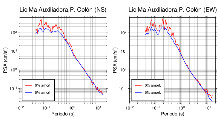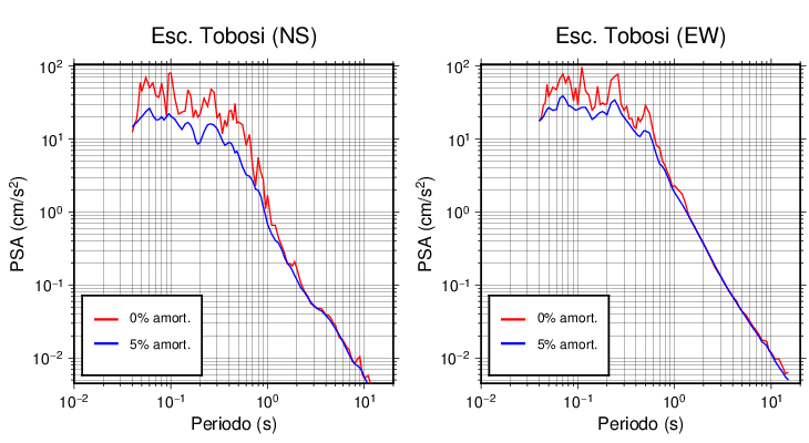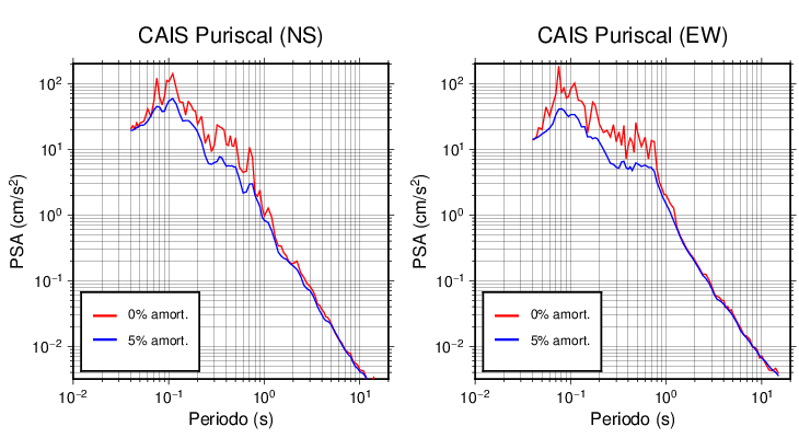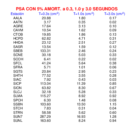 Esta tabla contiene los valores de PSA en cm/s2 calculados del espectro de respuesta con 5% de amortiguamiento a 1 segundo (se muestran los valores para aquellas estaciones que tuvieron un valor de aceleración superior a 5 cm/s2).