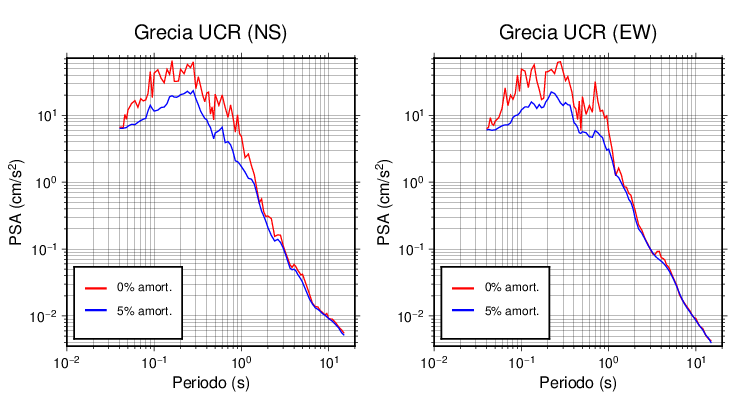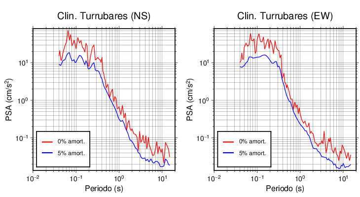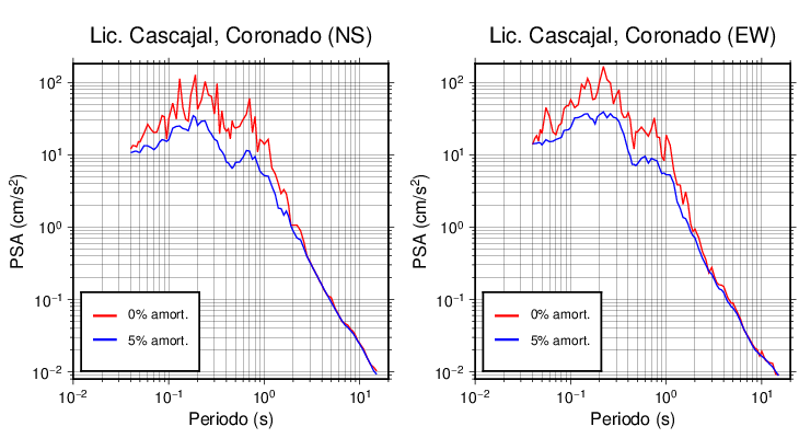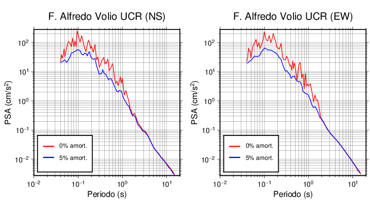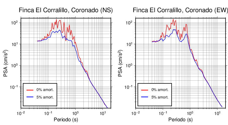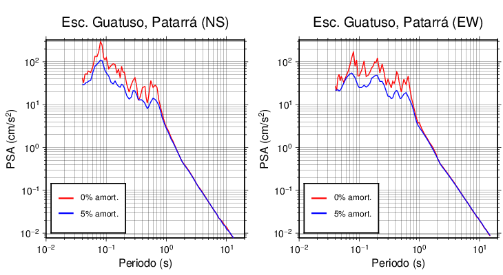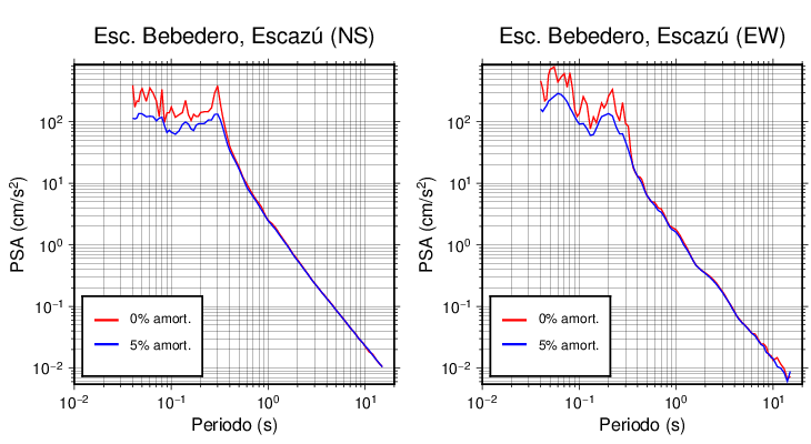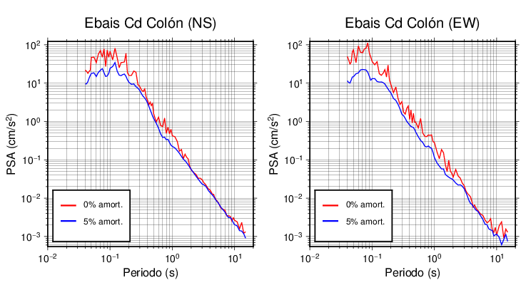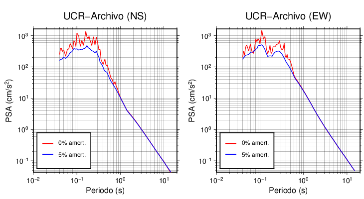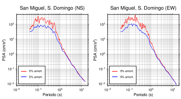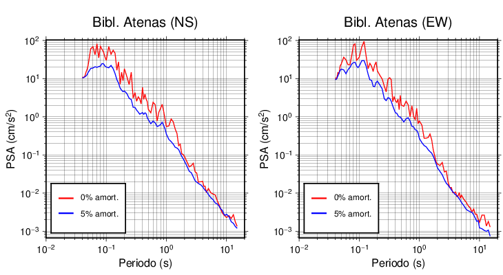 Esta tabla contiene los valores de PSA en cm/s2 calculados del espectro de respuesta con 5% de amortiguamiento a 1 segundo (se muestran los valores para aquellas estaciones que tuvieron un valor de aceleración superior a 5 cm/s2).