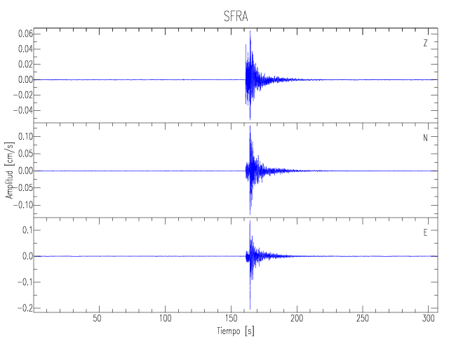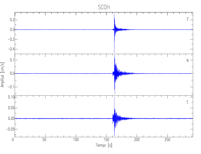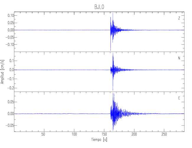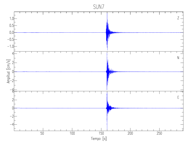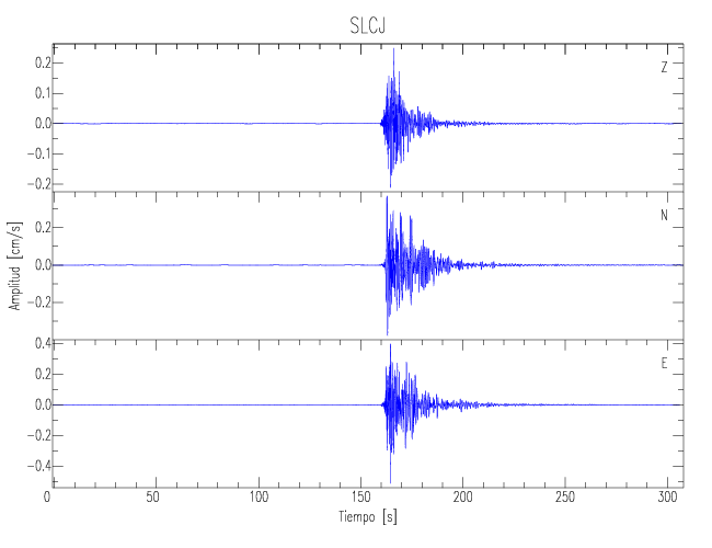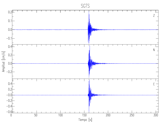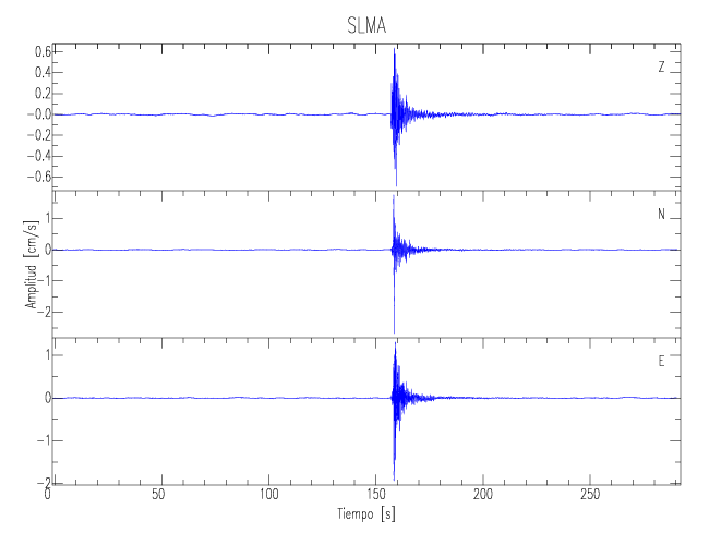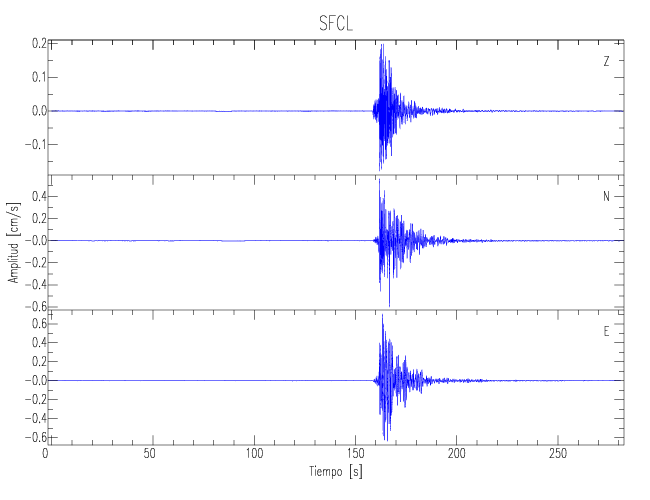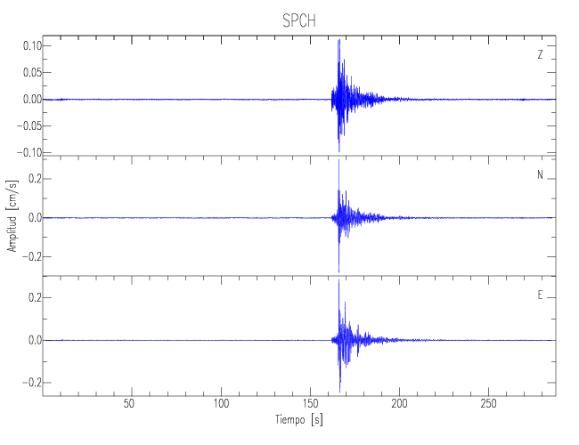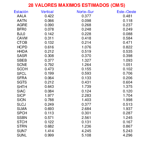 Los registros de velocidad se obtienen de la integración de los datos de aceleración. Esta tabla contiene los valores de velocidad máxima (PGV por sus siglas en inglés) para cada componente en cm/s. Las estaciones se listan en orden alfabético y corresponden a los sitios en que el nivel de aceleración fue superior a los 5 cm/s2.