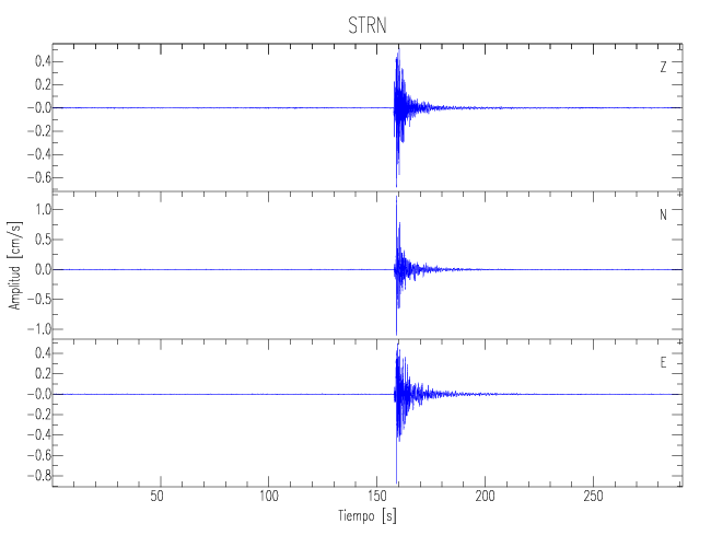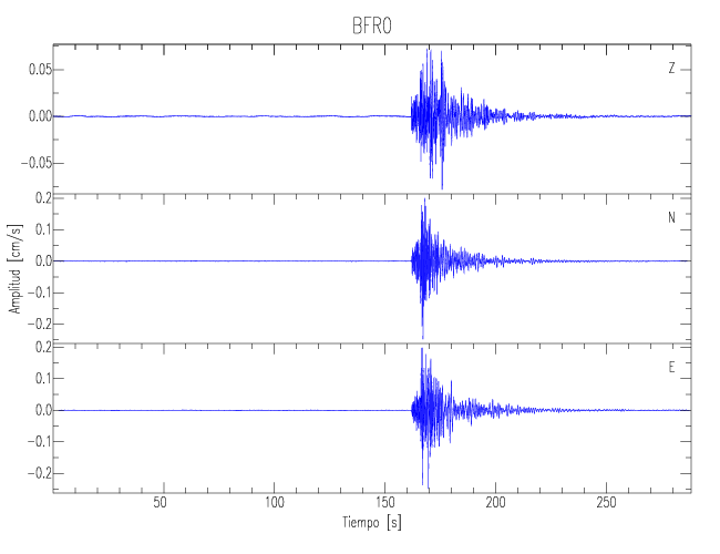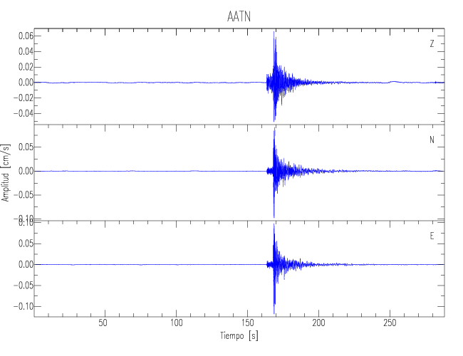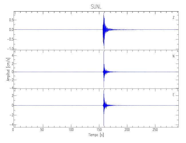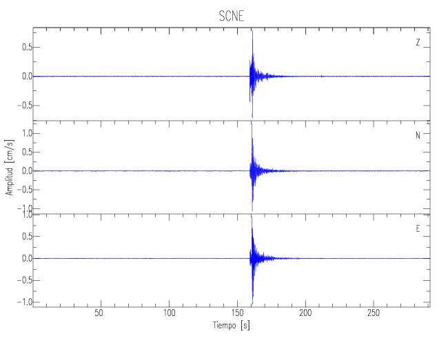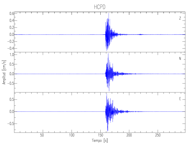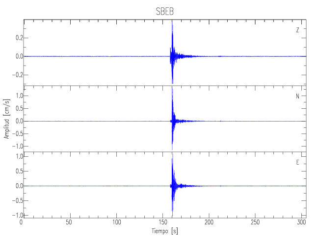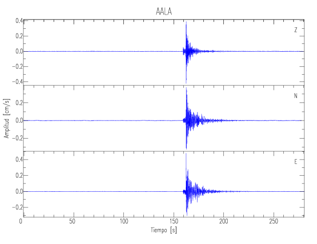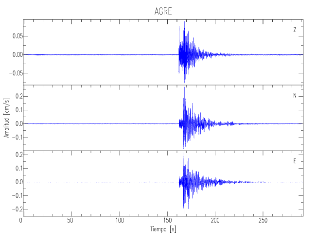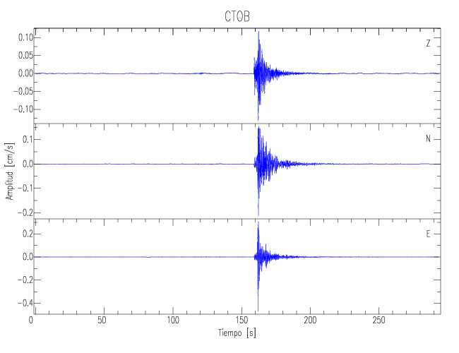 Los registros de velocidad se obtienen de la integración de los datos de aceleración. Esta tabla contiene los valores de velocidad máxima (PGV por sus siglas en inglés) para cada componente en cm/s. Las estaciones se listan en orden alfabético y corresponden a los sitios en que el nivel de aceleración fue superior a los 5 cm/s2.