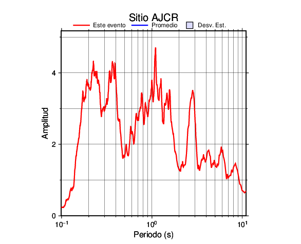 Los resultados que se presentan aquí fueron obtenidos luego de dividir las componentes horizontales entre la componente vertical (conocido como técnica H/V). Se grafica tanto el efecto de sitio del sismo registrado como el valor promedio en cada estación y su correspondiente desviación estándar.