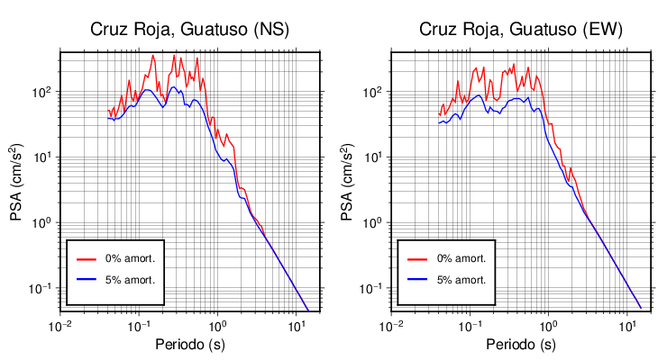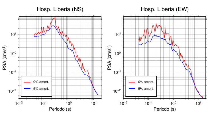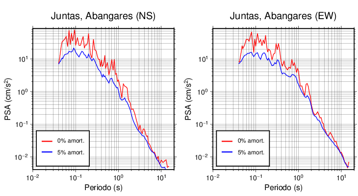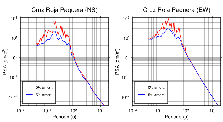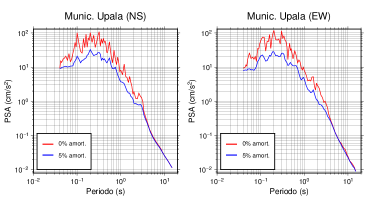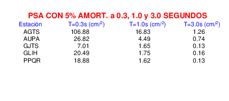 Esta tabla contiene los valores de PSA en cm/s2 calculados del espectro de respuesta con 5% de amortiguamiento a 1 segundo (se muestran los valores para aquellas estaciones que tuvieron un valor de aceleración superior a 5 cm/s2).