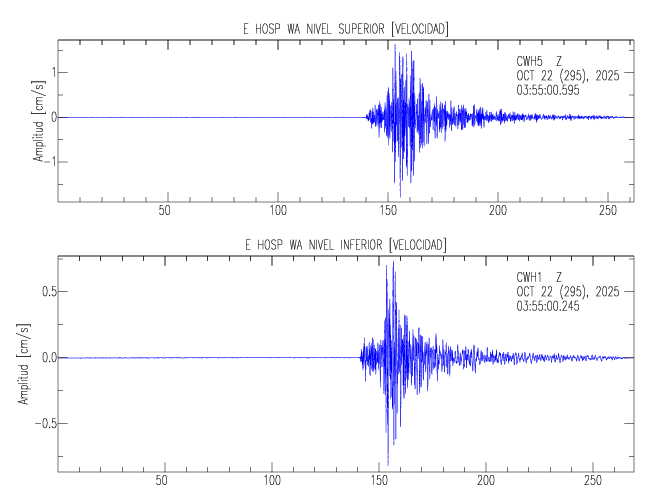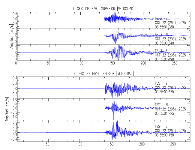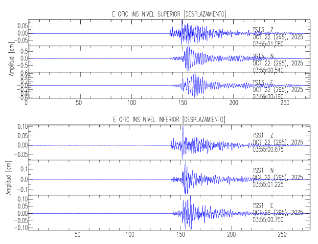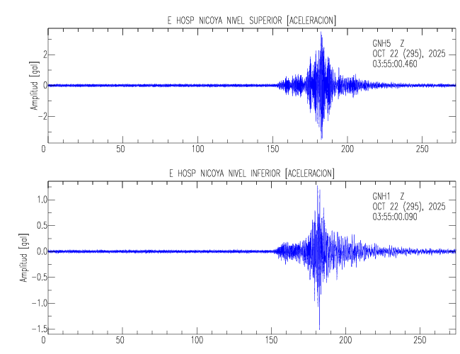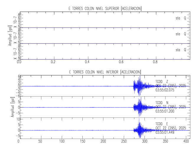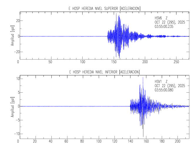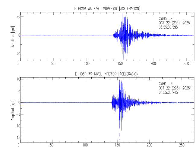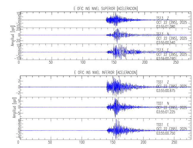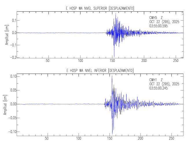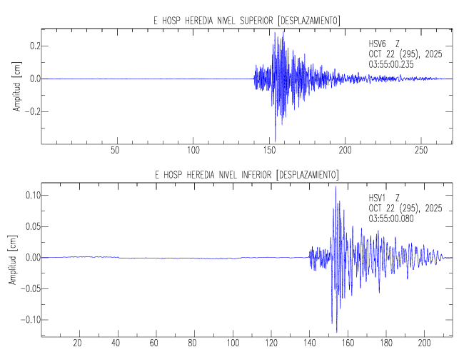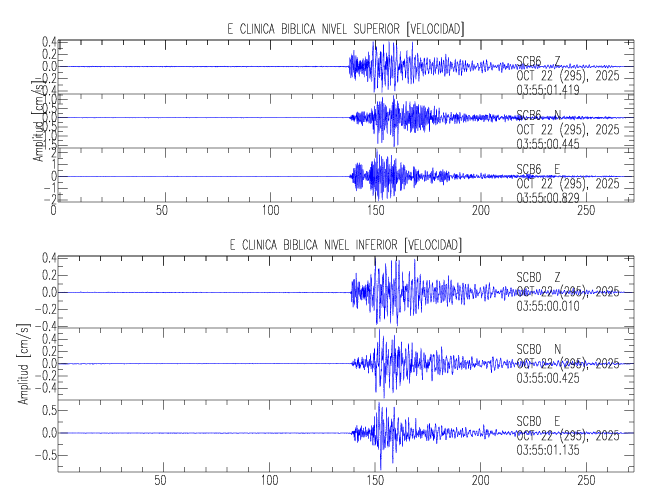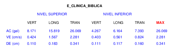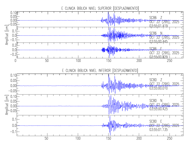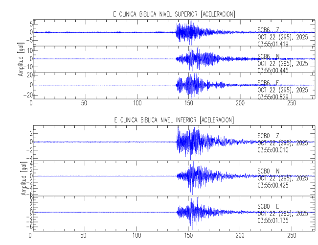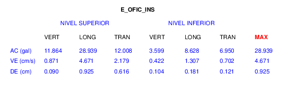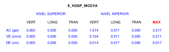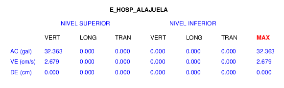 En esta sección se muestran los registros de aceleración (ac), velocidad (ve) y desplazamiento (de) de los niveles superior e inferior de varios edificios que se encuentran conectados al LIS ( http://www.estructuras.lis.ucr.ac.cr )