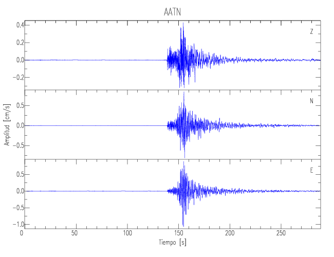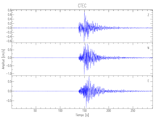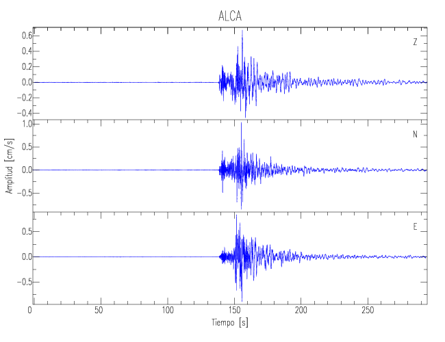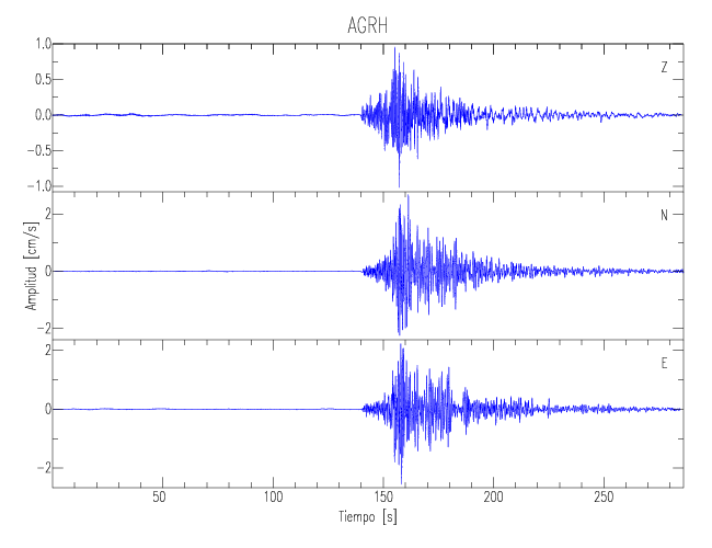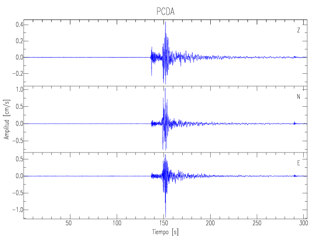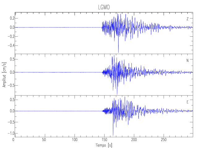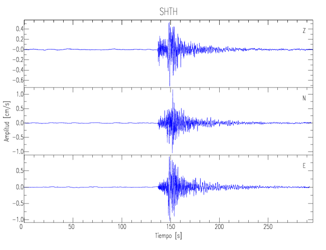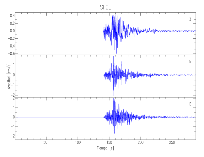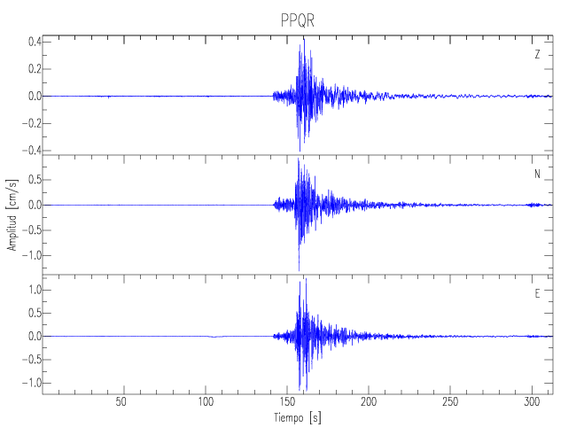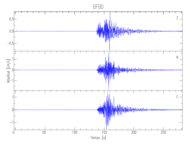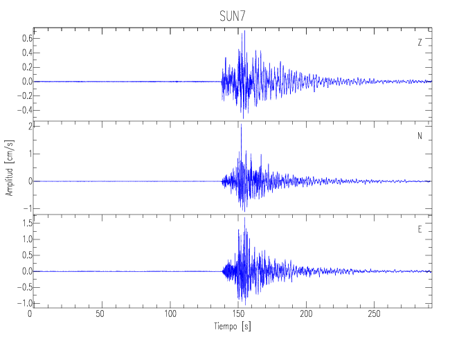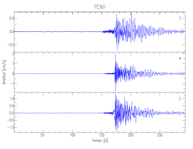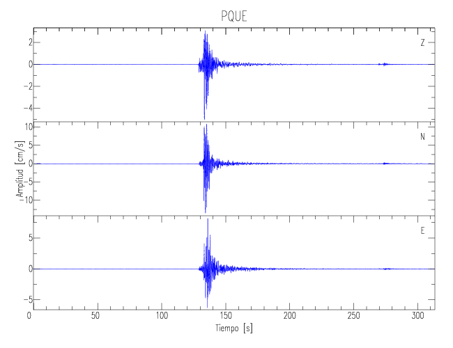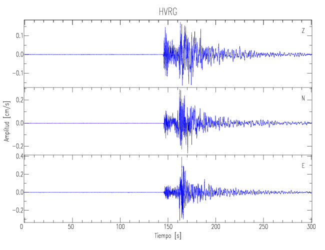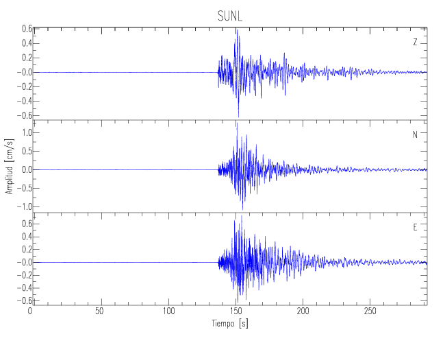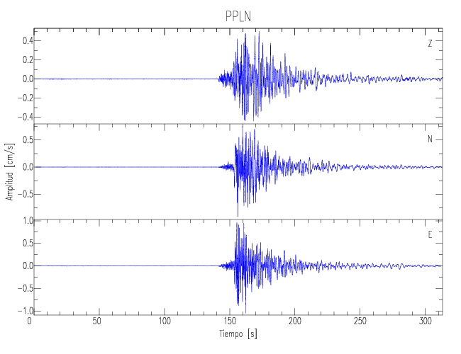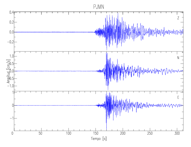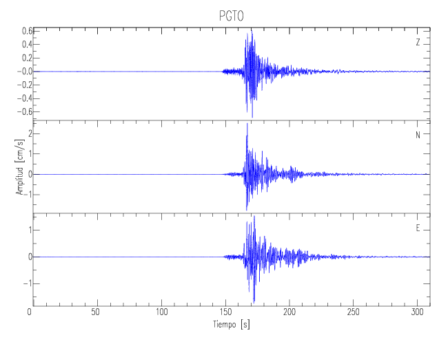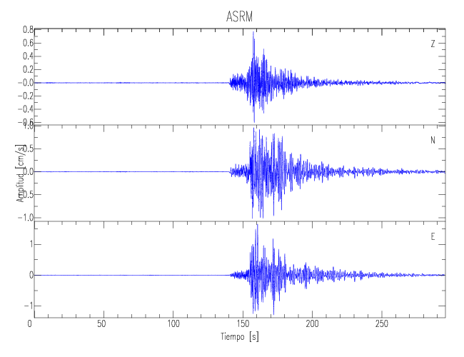 Los registros de velocidad se obtienen de la integración de los datos de aceleración. Esta tabla contiene los valores de velocidad máxima (PGV por sus siglas en inglés) para cada componente en cm/s. Las estaciones se listan en orden alfabético y corresponden a los sitios en que el nivel de aceleración fue superior a los 5 cm/s2.