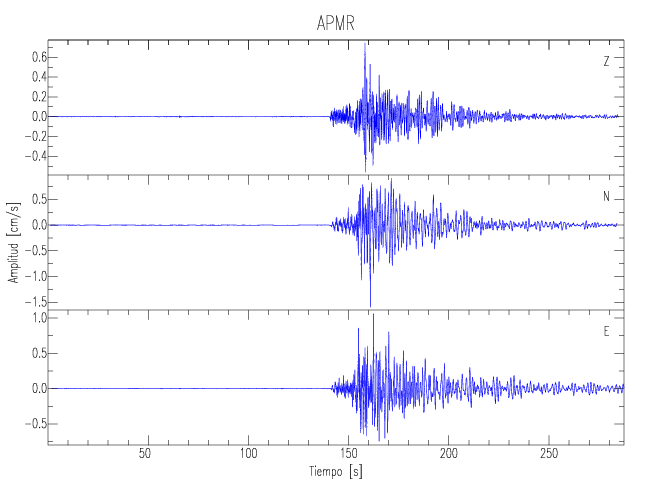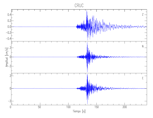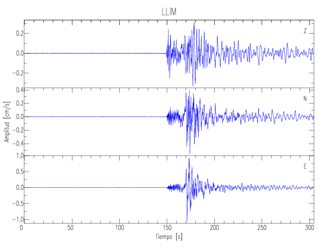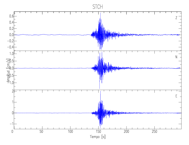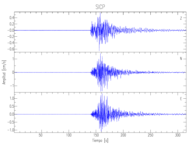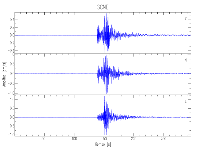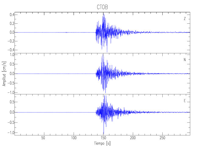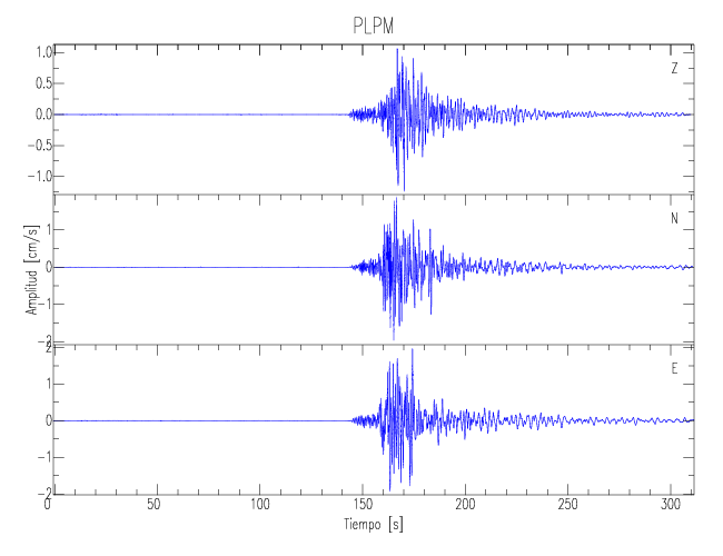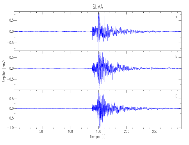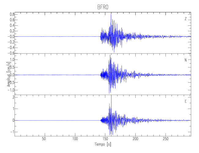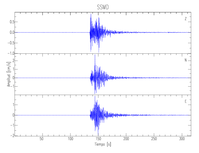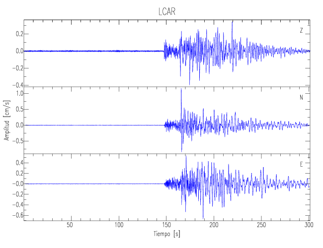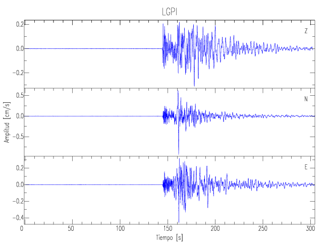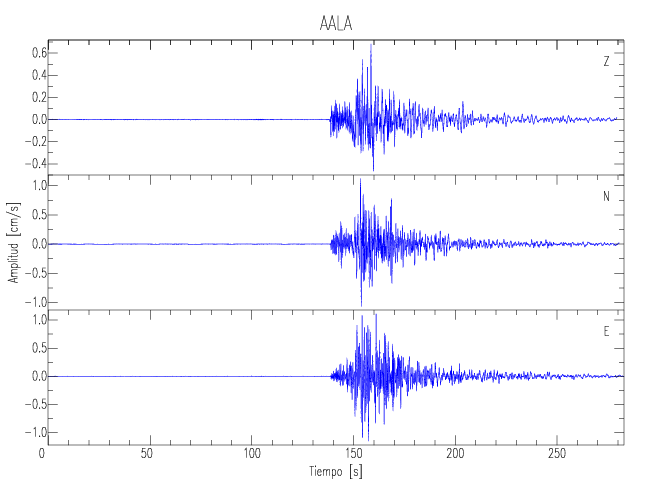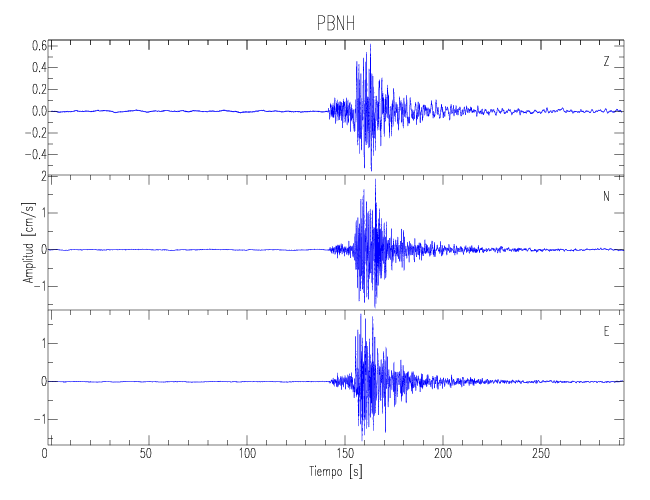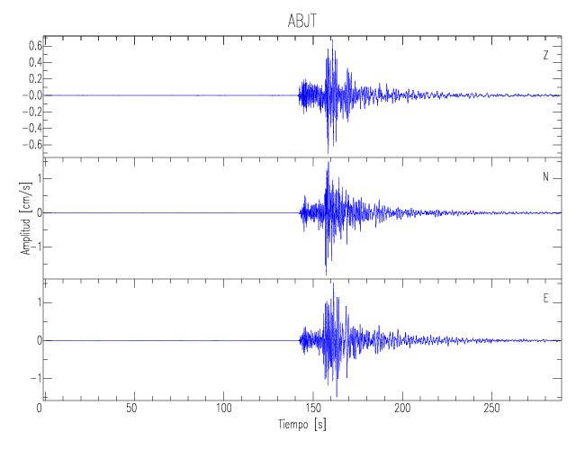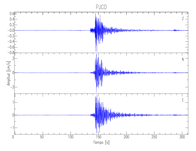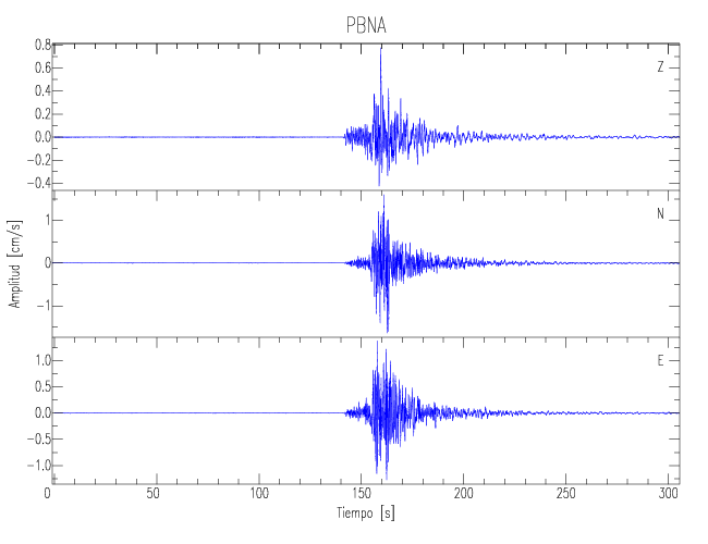 Los registros de velocidad se obtienen de la integración de los datos de aceleración. Esta tabla contiene los valores de velocidad máxima (PGV por sus siglas en inglés) para cada componente en cm/s. Las estaciones se listan en orden alfabético y corresponden a los sitios en que el nivel de aceleración fue superior a los 5 cm/s2.
