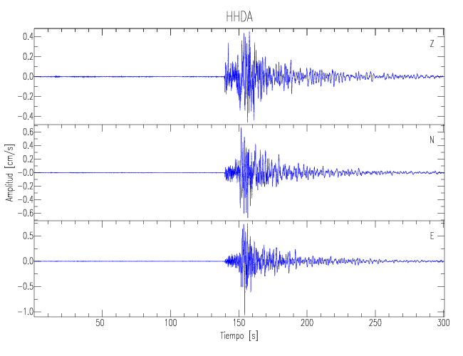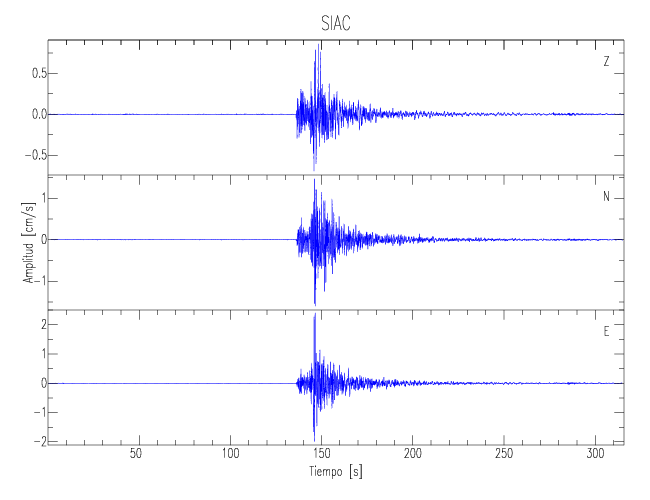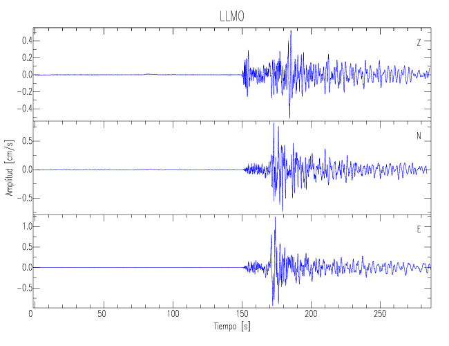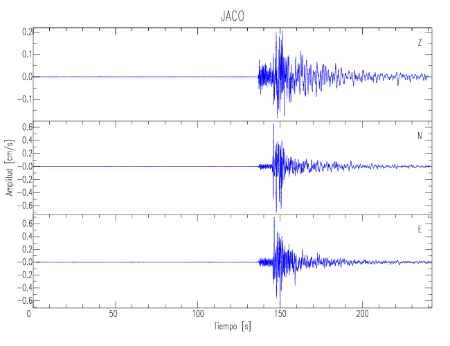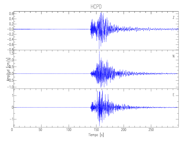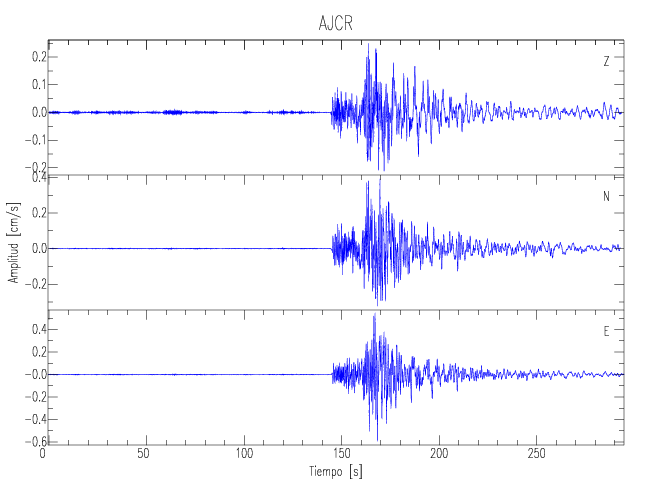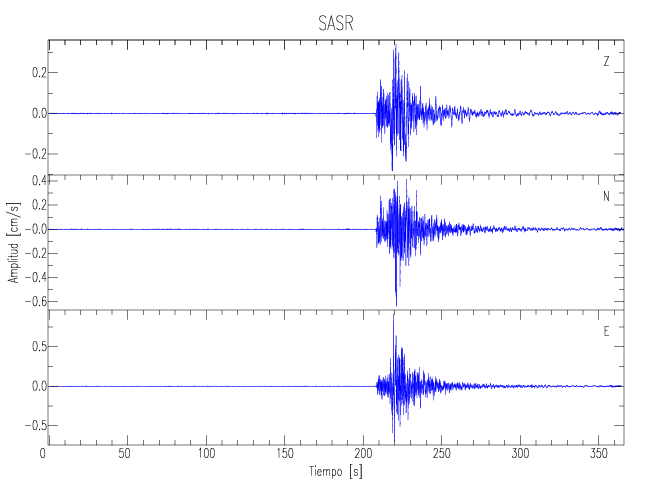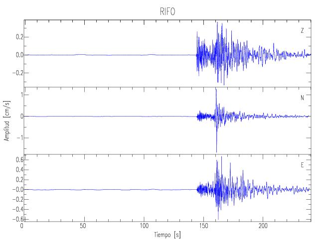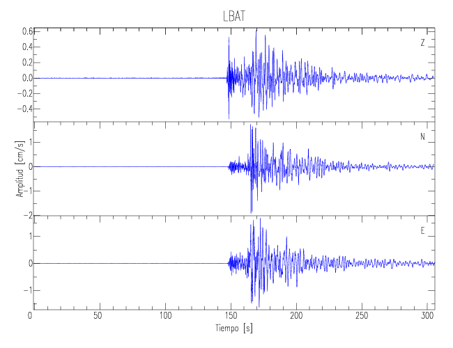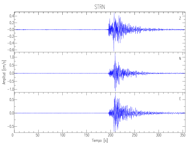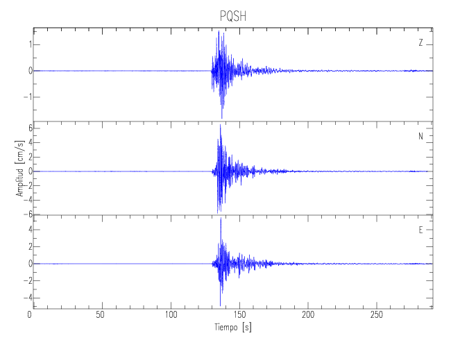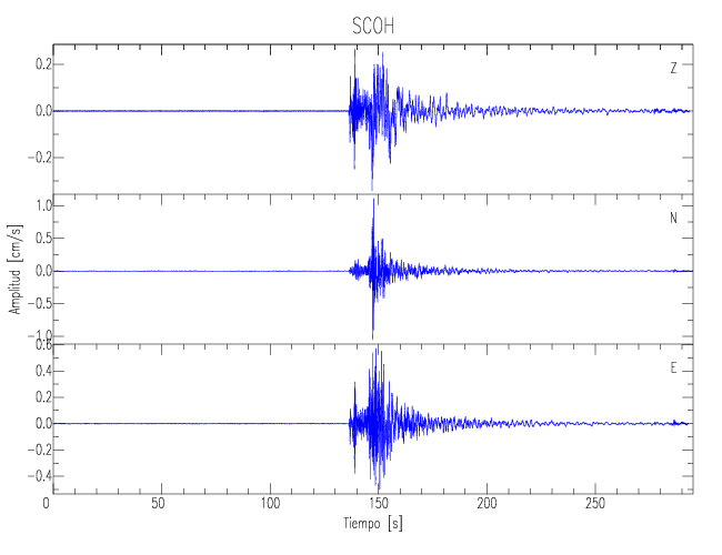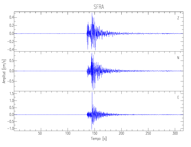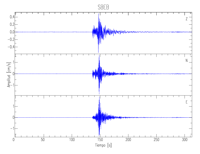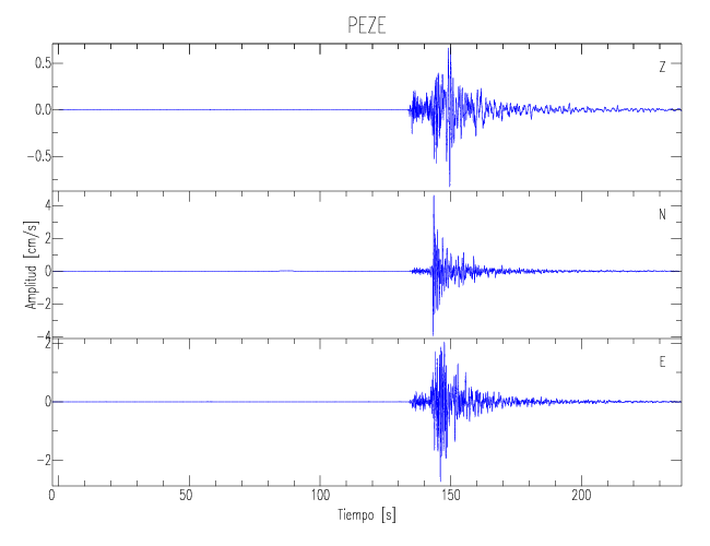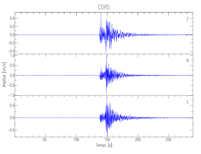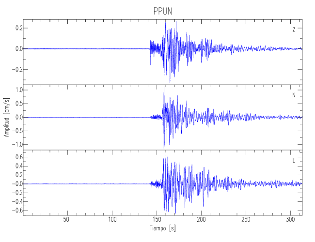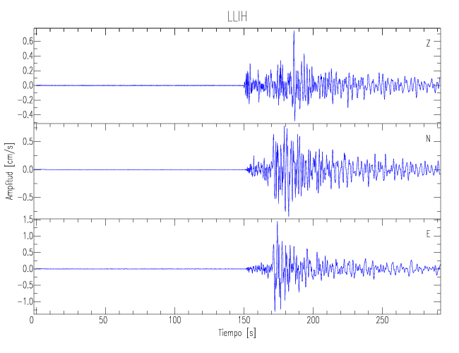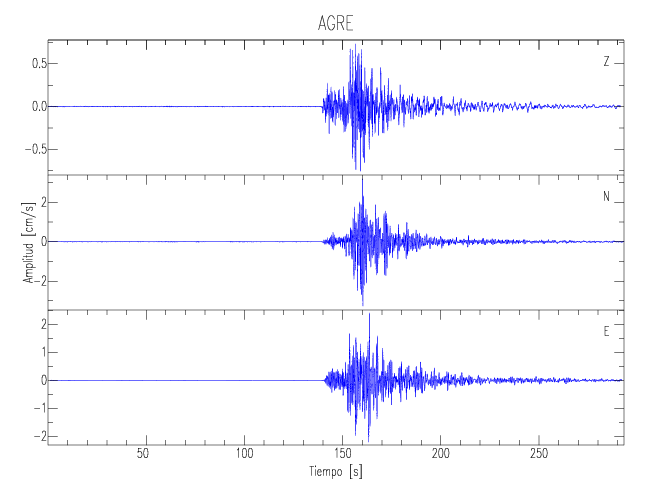 Los registros de velocidad se obtienen de la integración de los datos de aceleración. Esta tabla contiene los valores de velocidad máxima (PGV por sus siglas en inglés) para cada componente en cm/s. Las estaciones se listan en orden alfabético y corresponden a los sitios en que el nivel de aceleración fue superior a los 5 cm/s2.
