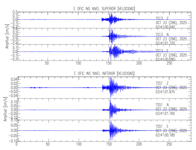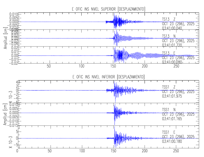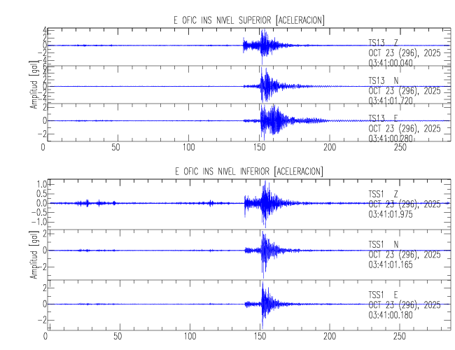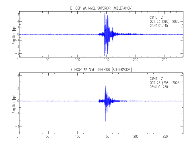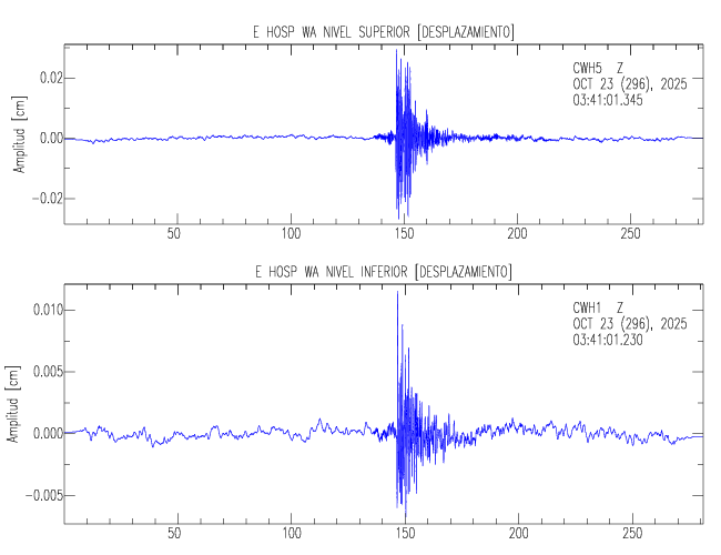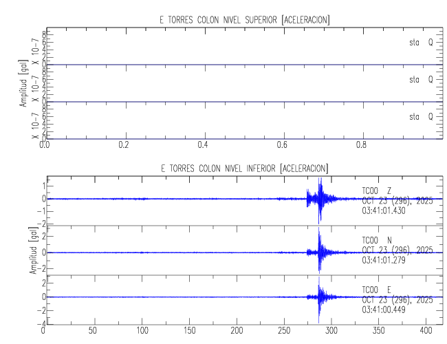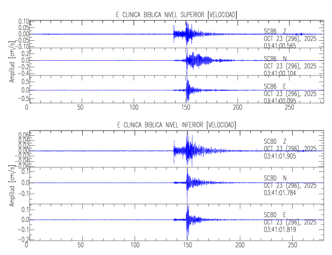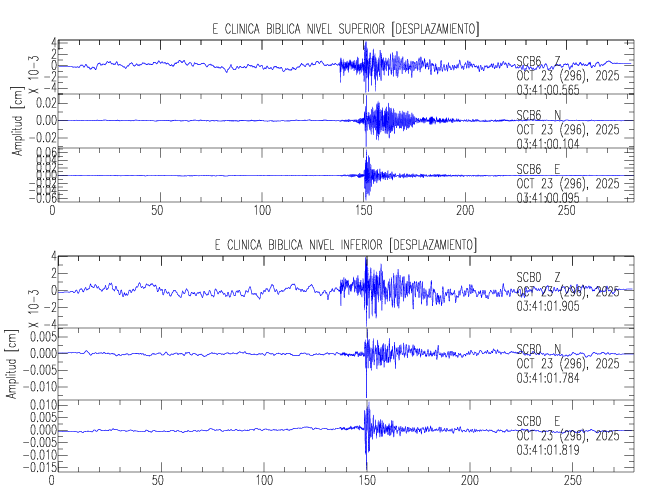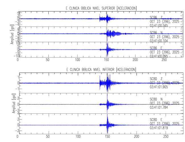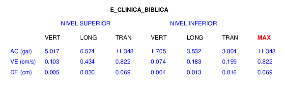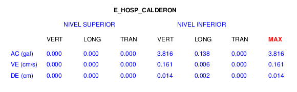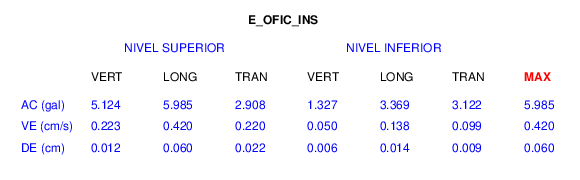En esta sección se muestran los registros de aceleración (ac), velocidad (ve) y desplazamiento (de) de los niveles superior e inferior de varios edificios que se encuentran conectados al LIS ( http://www.estructuras.lis.ucr.ac.cr )